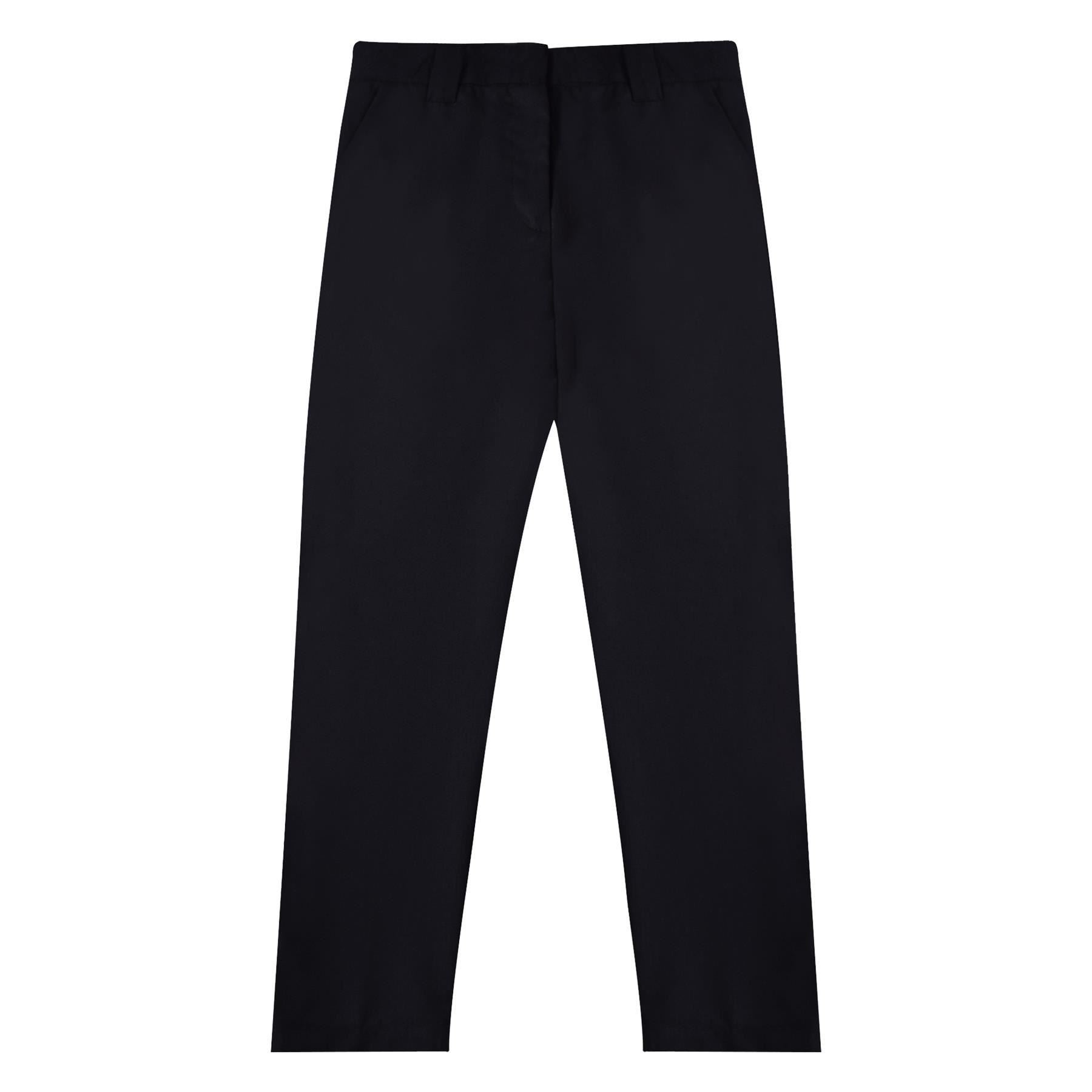 Our girls school trousers feature a slim fit and a flat front design for maximum comfort. Thanks to the convenient zip and clip closure, they are easy to wear and remove. Additionally, the trousers are equipped with hook-and-bar fastening and tailored belt loops to ensure a secure fit throughout the day. -