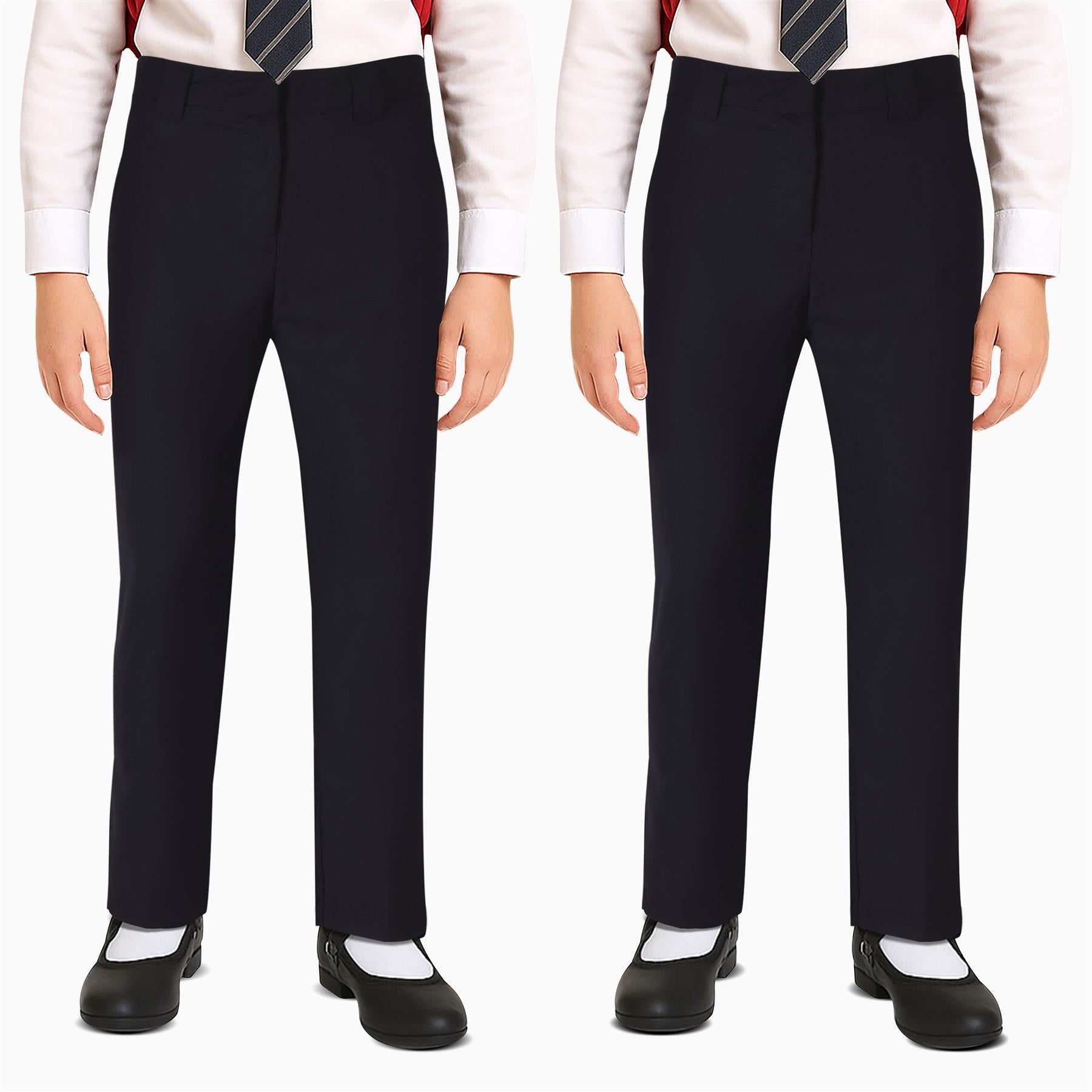 Kids 2 Pack Girls Pants Plain School Uniform Pull Up Regular Fit School Trousers