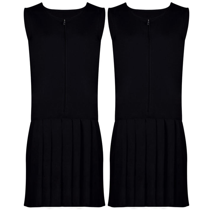 Kids 2 Pack Girls School Uniform Pinafore Dress Zip Up Pleated School Dress 3-14