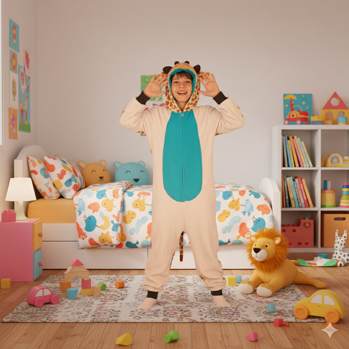 These super-soft Giraffe A2Z onesie one piece are available in a wide range of sizes to suit various ages, including 3-4 years, 5-6 years, 7-8 years, 9-10 years, 11-12 years, and 13-14 years. This extensive size range ensures a comfortable fit for children at different stages of growth.