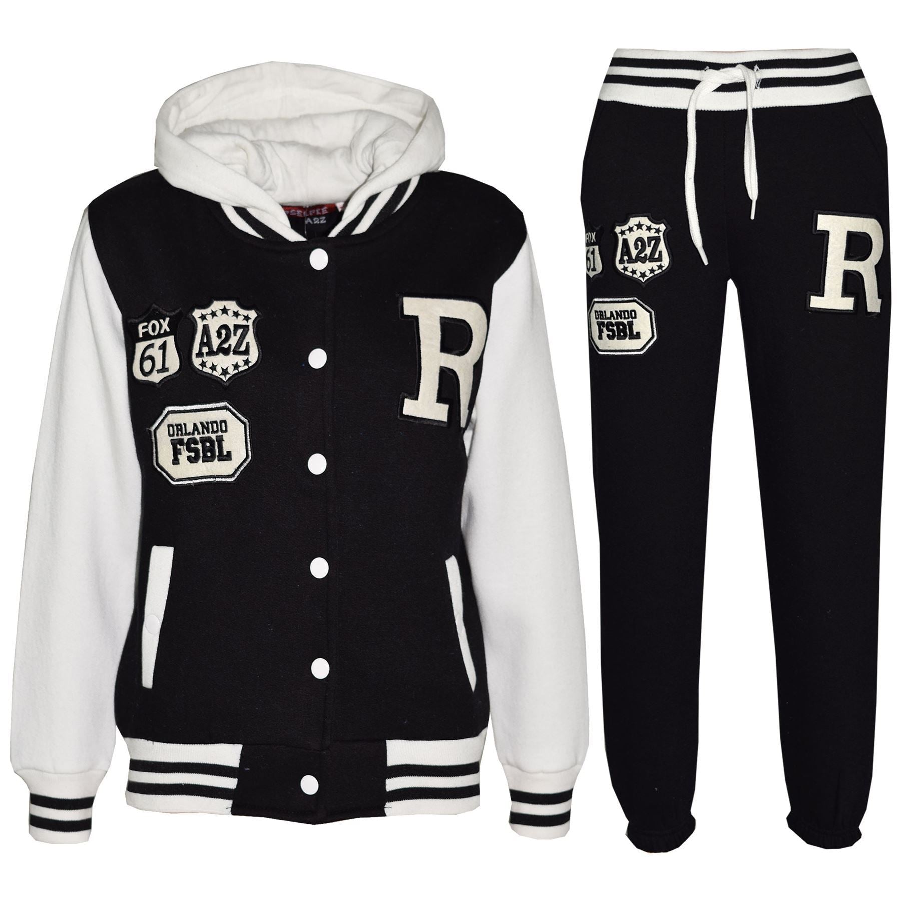 Kids Baseball Tracksuit Hooded Jacket With Joggers R Fashion FOX Varsity Style