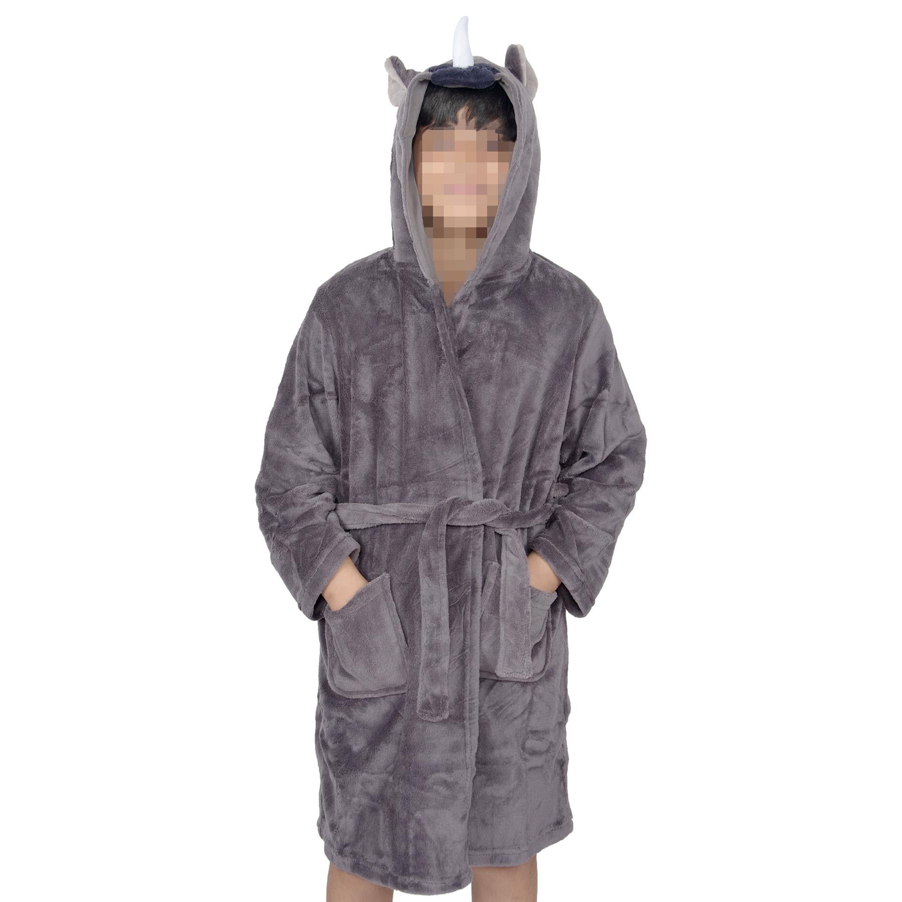 Kids Bathrobe Animal Face Nightgown Kids Rhino hooded Towel Dressing Gown