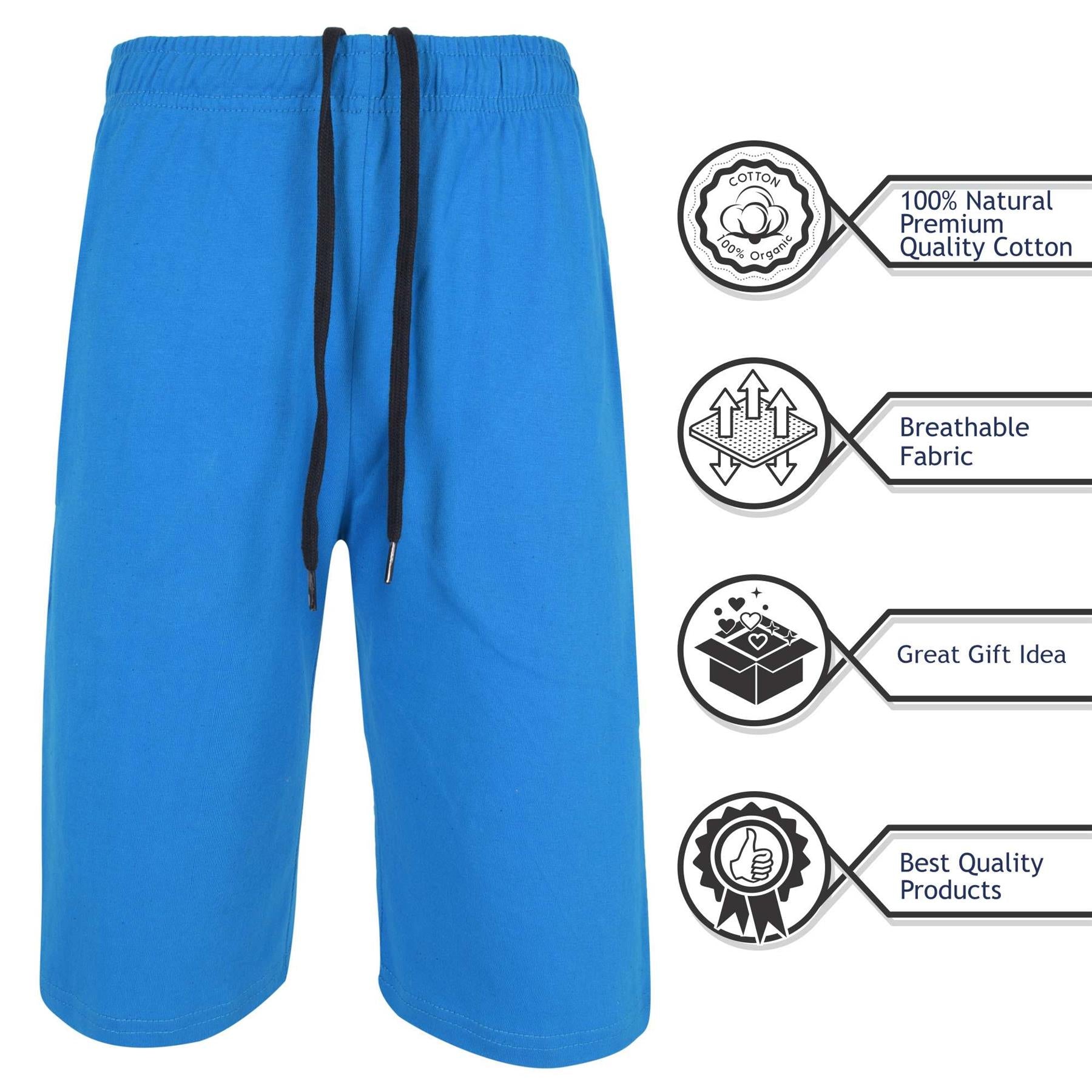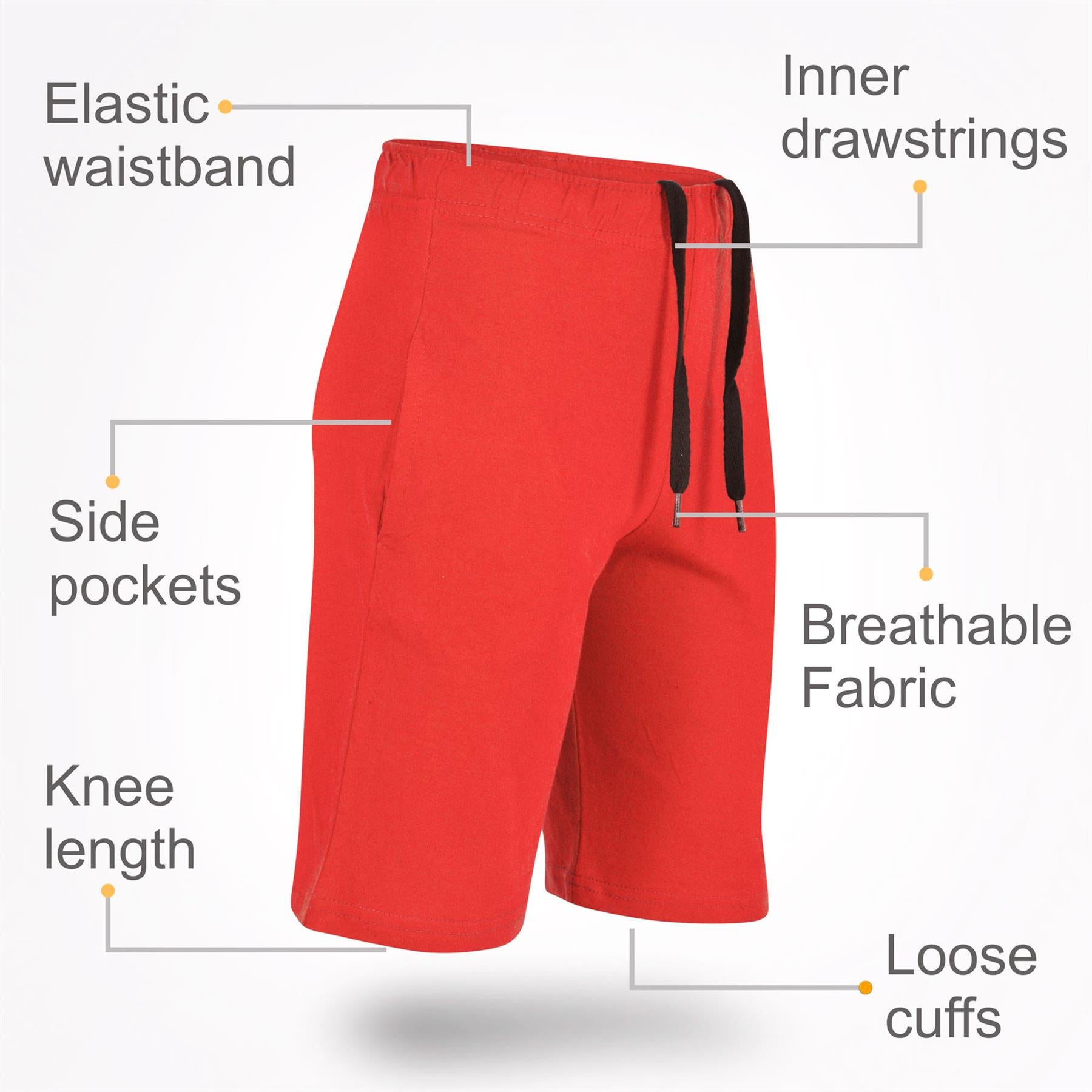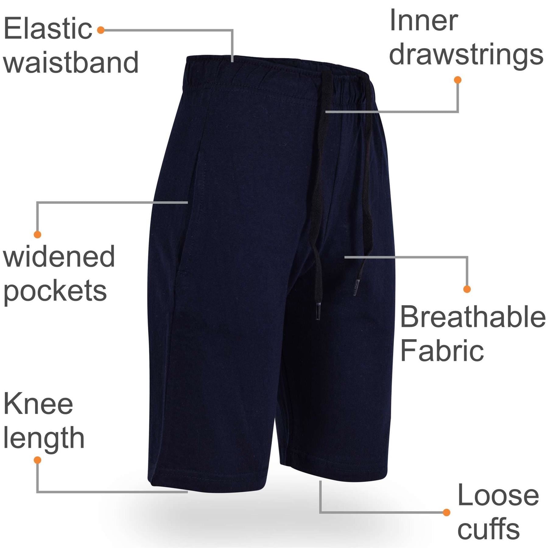 Manufactured from 100% cotton, these shorts are comfortable, breathable, and suitable for any weather. They are knee-length and feature an elastic waist with adjustable drawcords inside. -