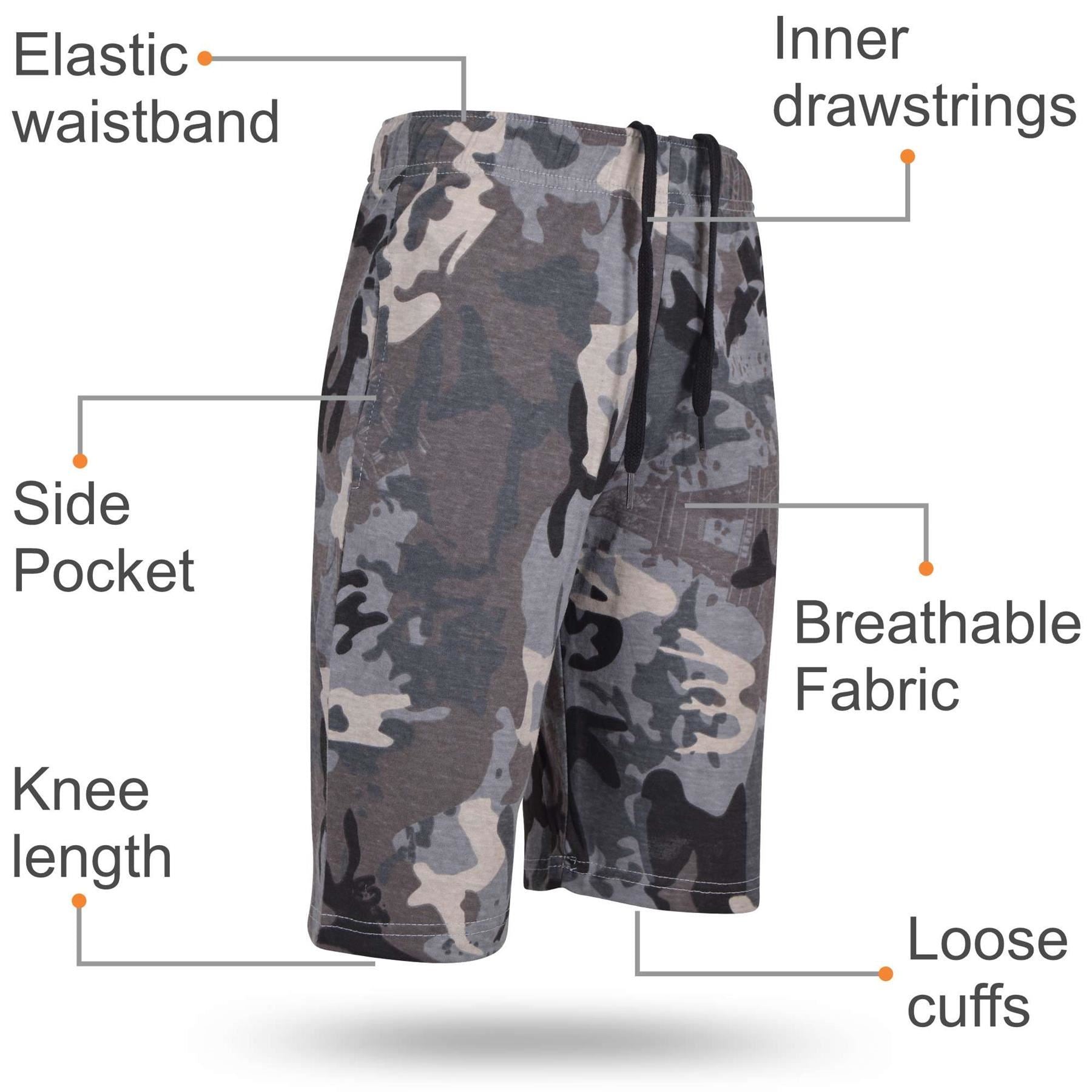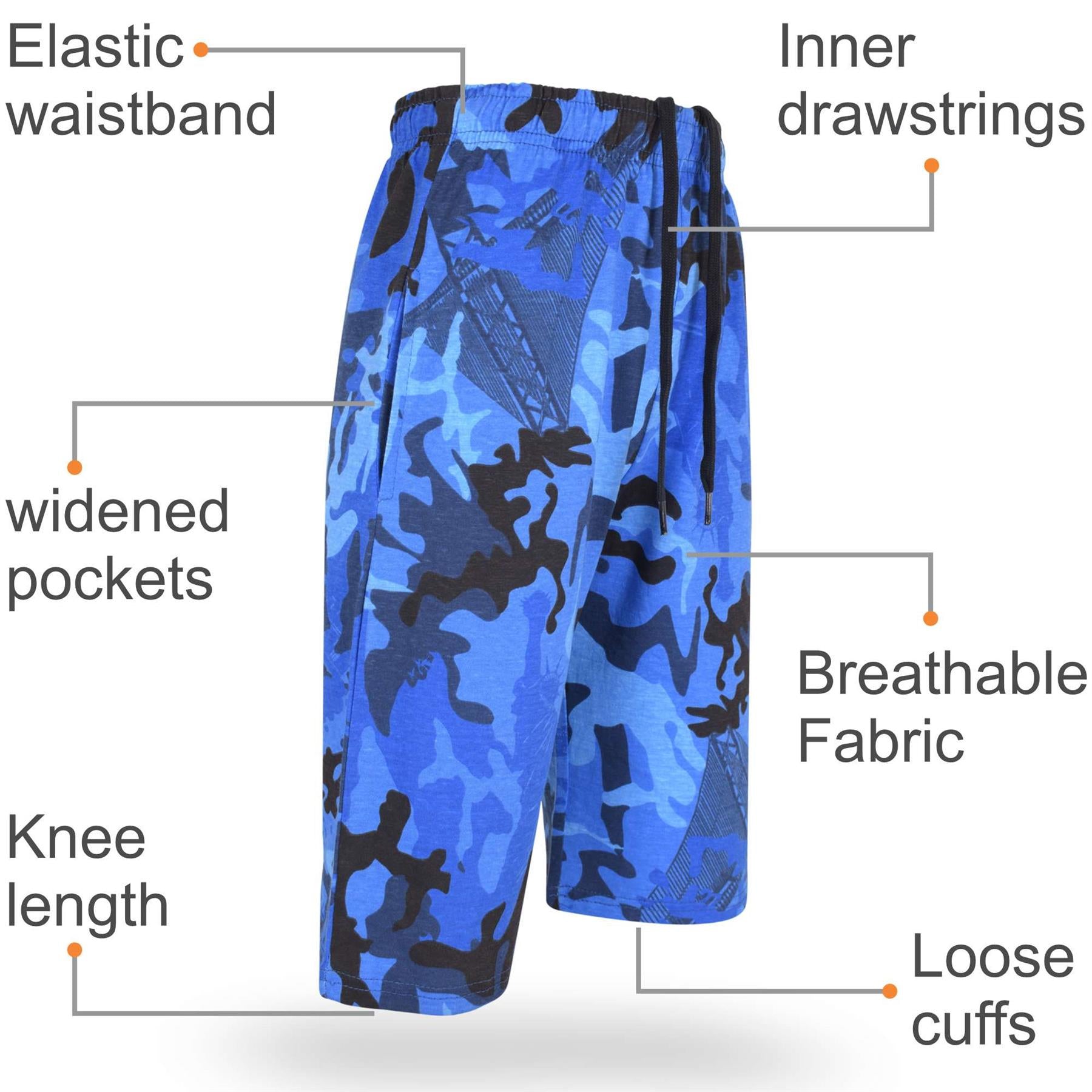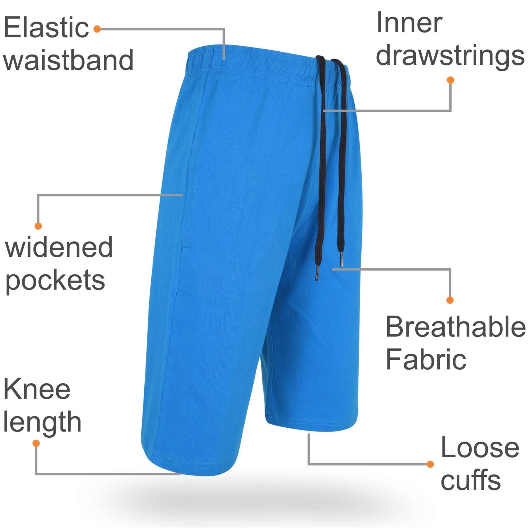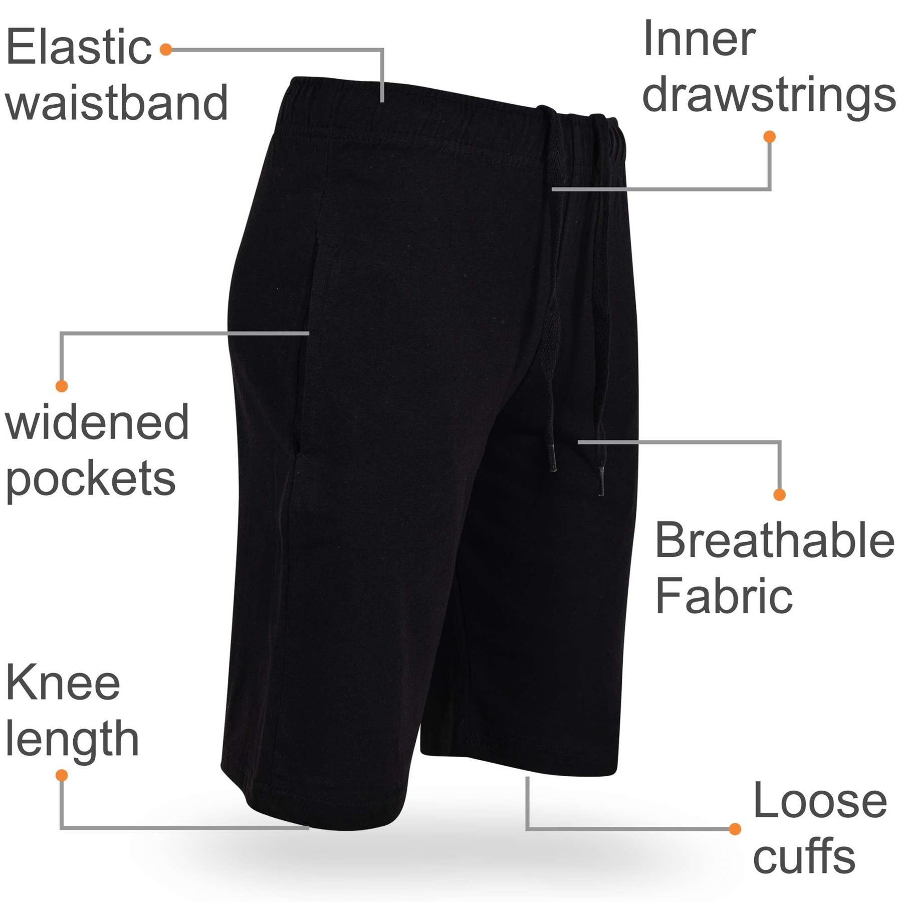 Manufactured from 100% cotton, these shorts are comfortable, breathable, and suitable for any weather. They are knee-length and feature an elastic waist with adjustable drawcords inside. -