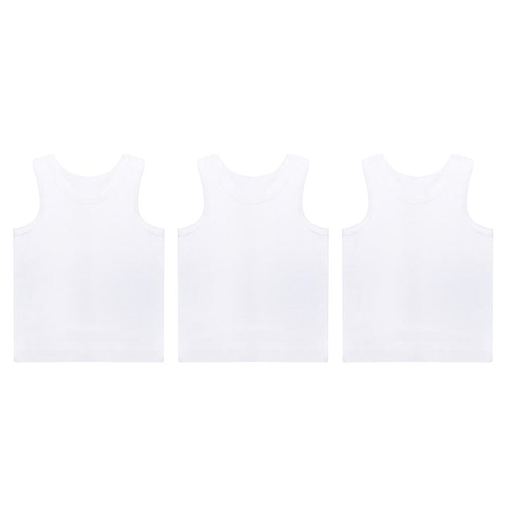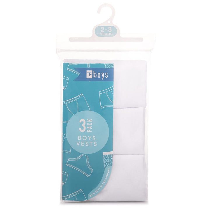 These plain white vests are an everyday wardrobe must-have, suitable for layering during colder months or wearing on their own in warmer weather. Their simple, classic style makes them ideal for school, PE, nursery, bedtime, or casual summer outfits, offering year-round practicality for active boys. -