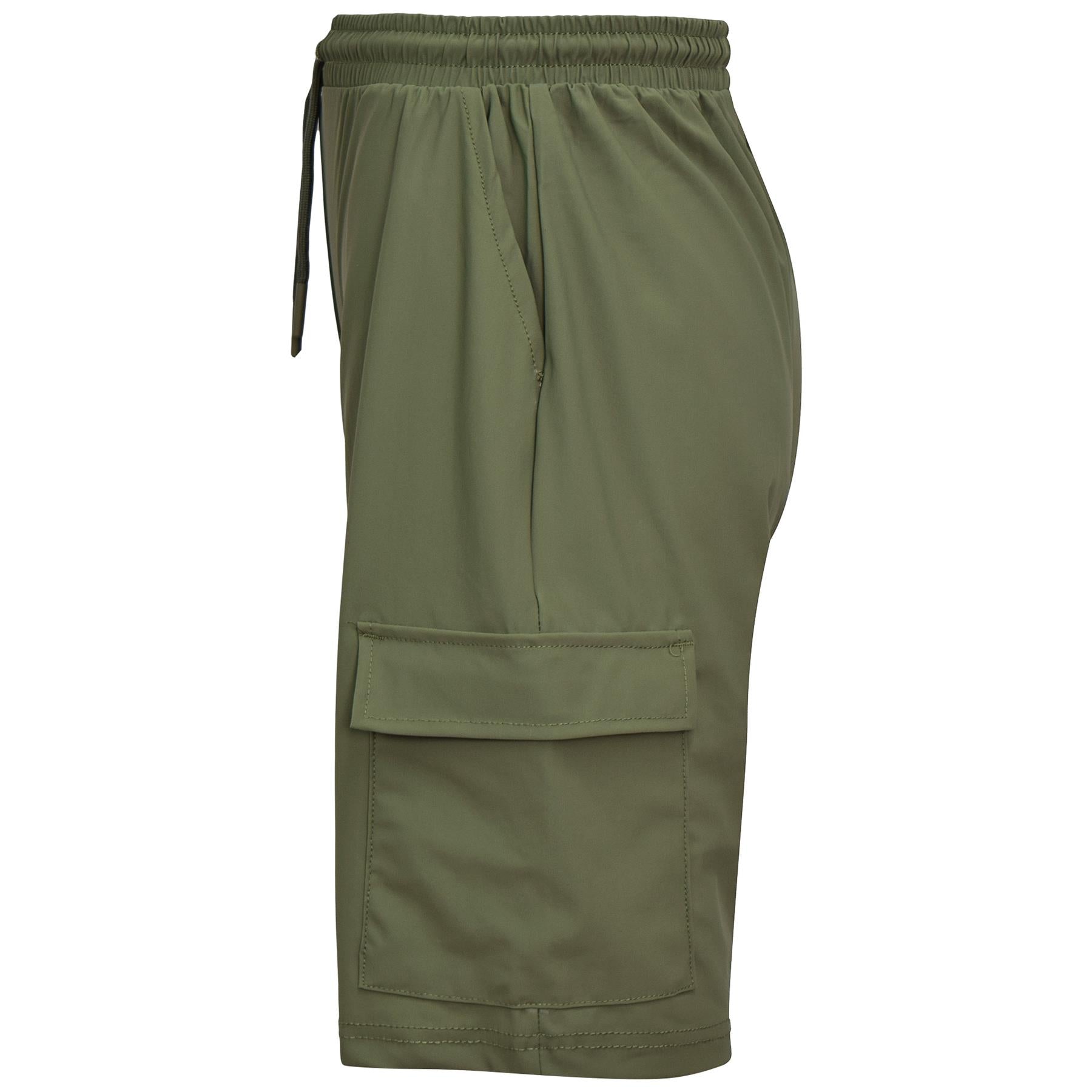 Crafted from 78% nylon and 22% spandex, these knee-length Cargo Shorts offer comfort, breathability, and versatility in various weather conditions. An elastic waist with adjustable drawcords adds to the garment's practical functionality. -
