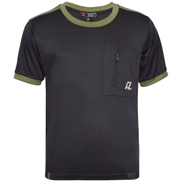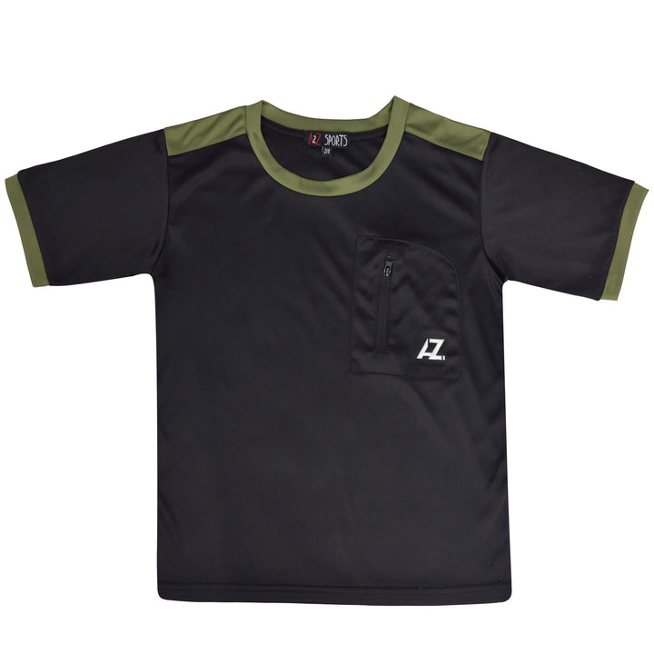 It features a comfy round neck, a cool front zip pocket, and our signature A2Z logo. The beautiful color-contrast trimming on the cuffs, neckline, and shoulder panels adds an extra touch of style. Available in sizes from 3 to 14 years, this T-shirt is perfect for layering. Plus, it is machine washable for easy care. -