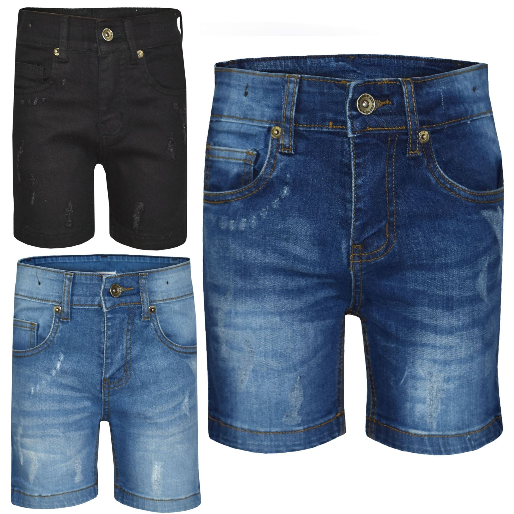Kids Boys Distressed Denim Shorts Comfort Stretch Jeans Trouser Pants Age 5-13