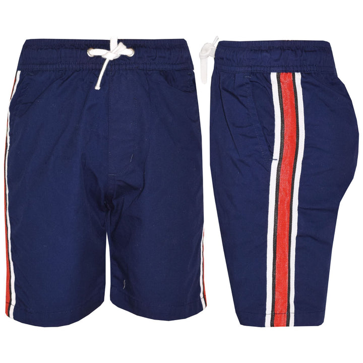 Kids Boys Girls Chino Shorts Contrast Stripes Knee Length Half Pant Age 5-13 Yr