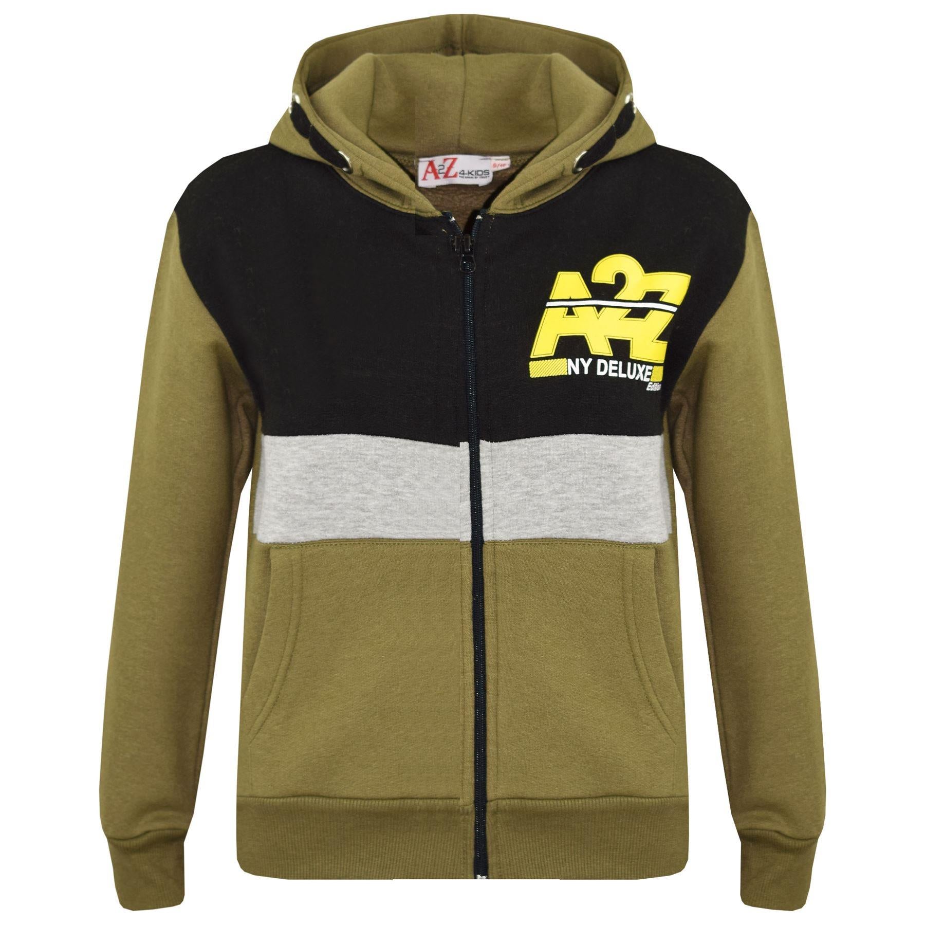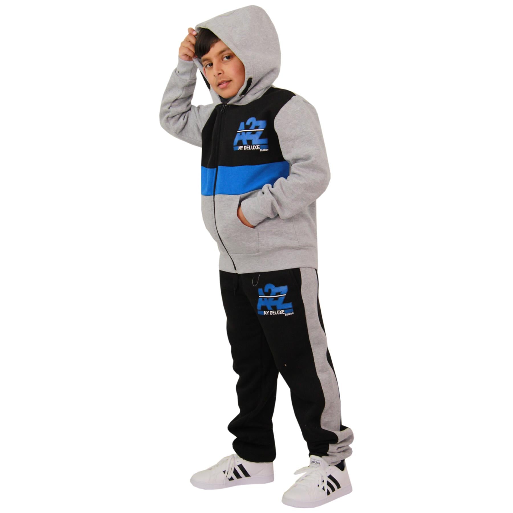 Kids Boys Girls Contrast Panel Tracksuit A2Z NY Deluxe Print Hoodie With Joggers