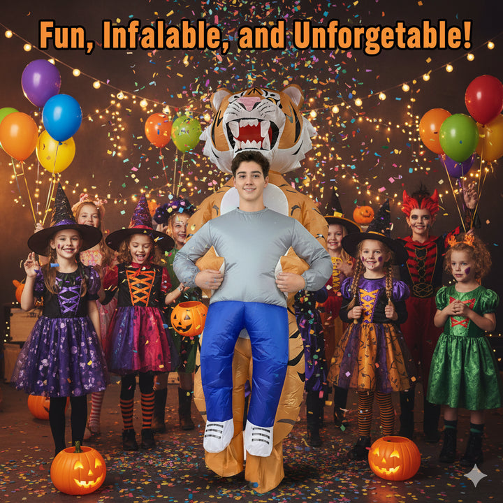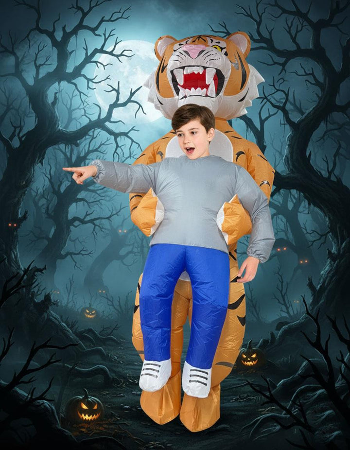 Kids Boys Girls Inflatable Tiger Halloween Costume Funny Blow Up Fancy Dress