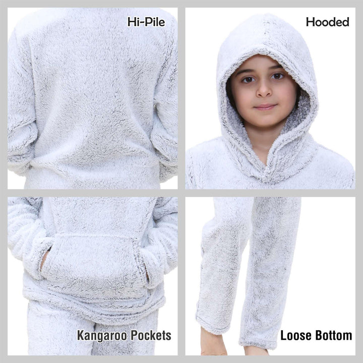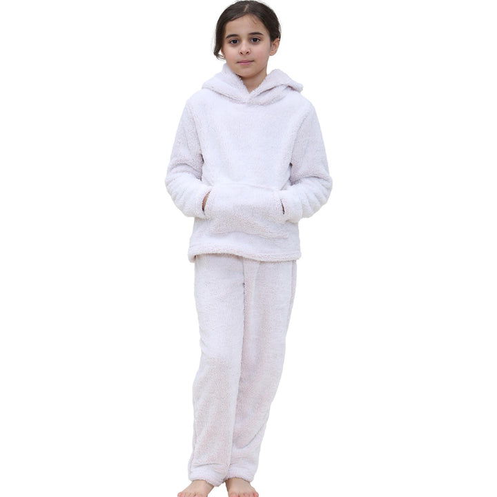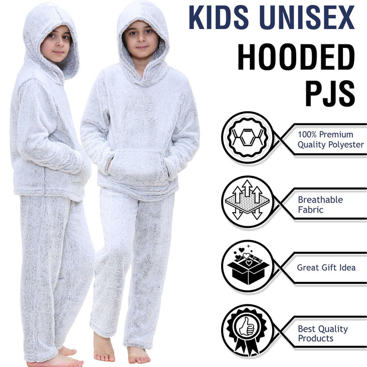 Kids Boys Girls Plain Pyjama Extra Soft Loungewear Thick Pile Fleece PJS Set