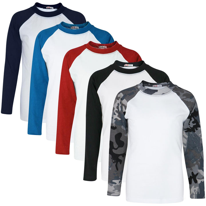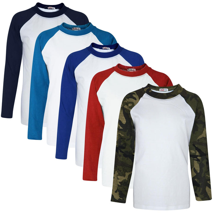 Kids Boys Girls T Shirts Plain Baseball Long Raglan Sleeves Sports Tees 2-13 Yrs