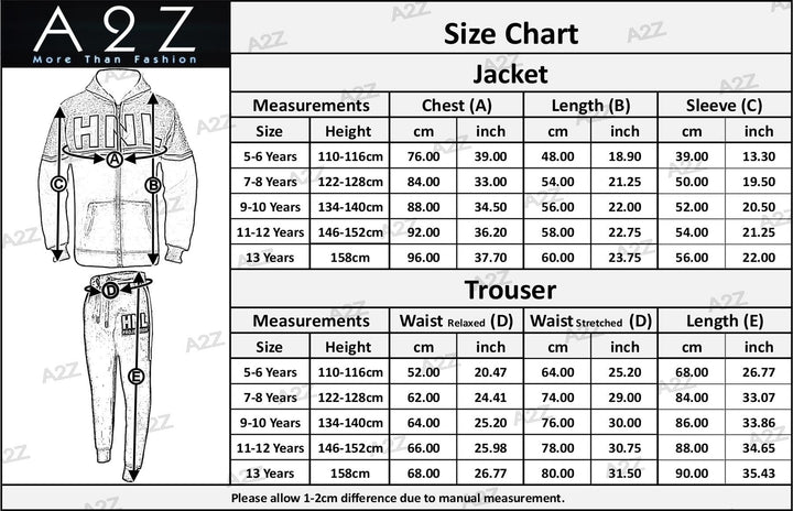 Kids Boys Girls Tracksuit Designer HNL Zipped Top Bottom Jogging Suit 7-13 Years