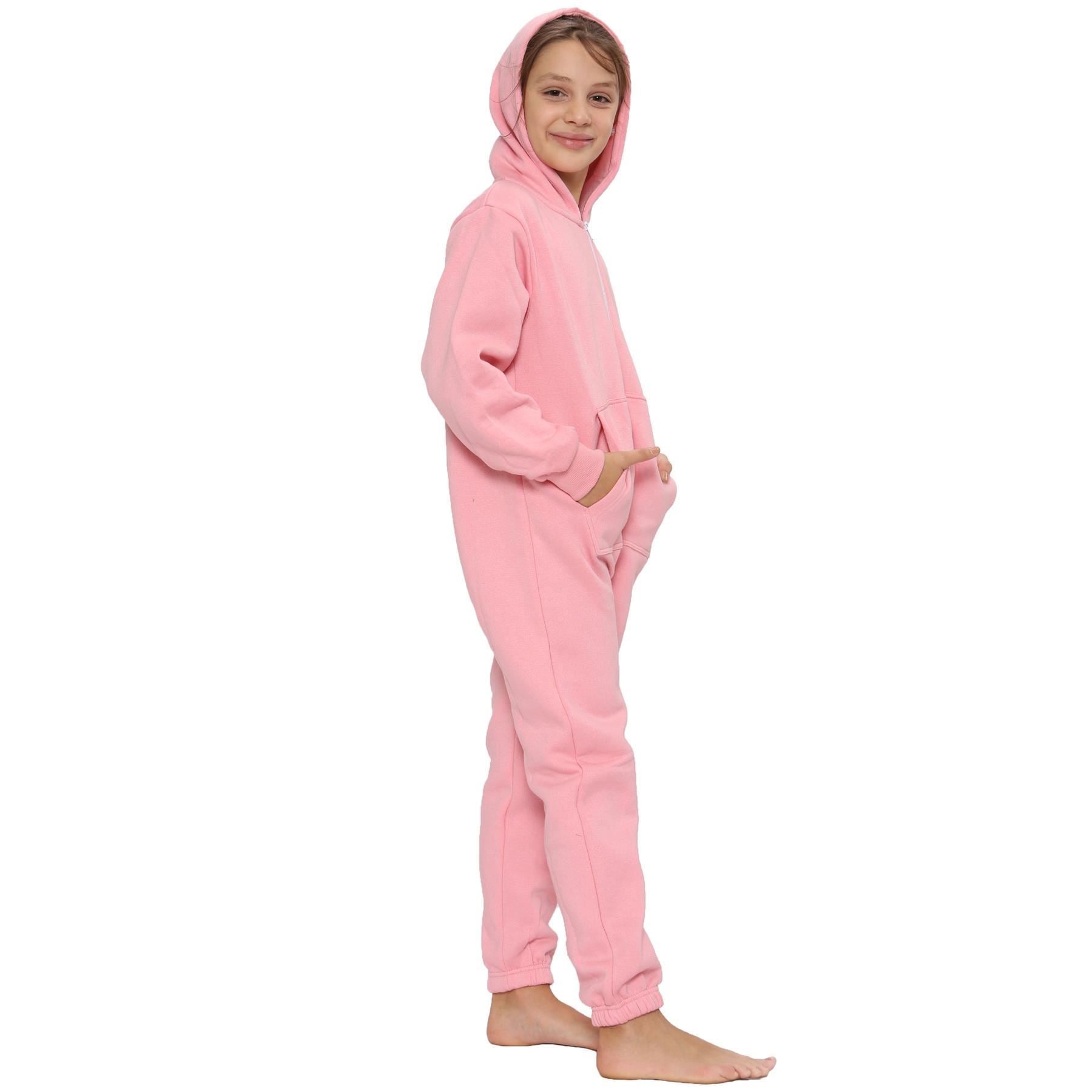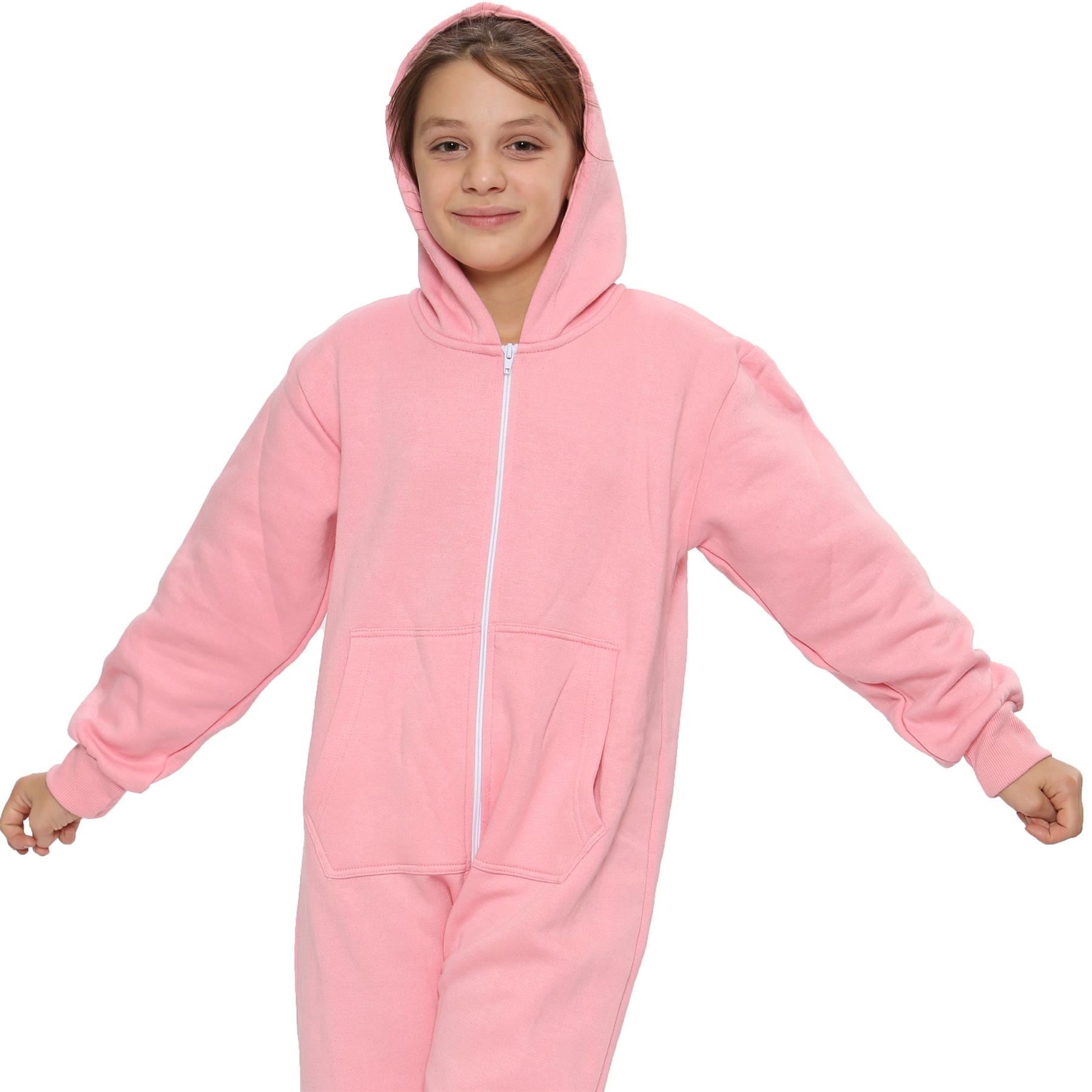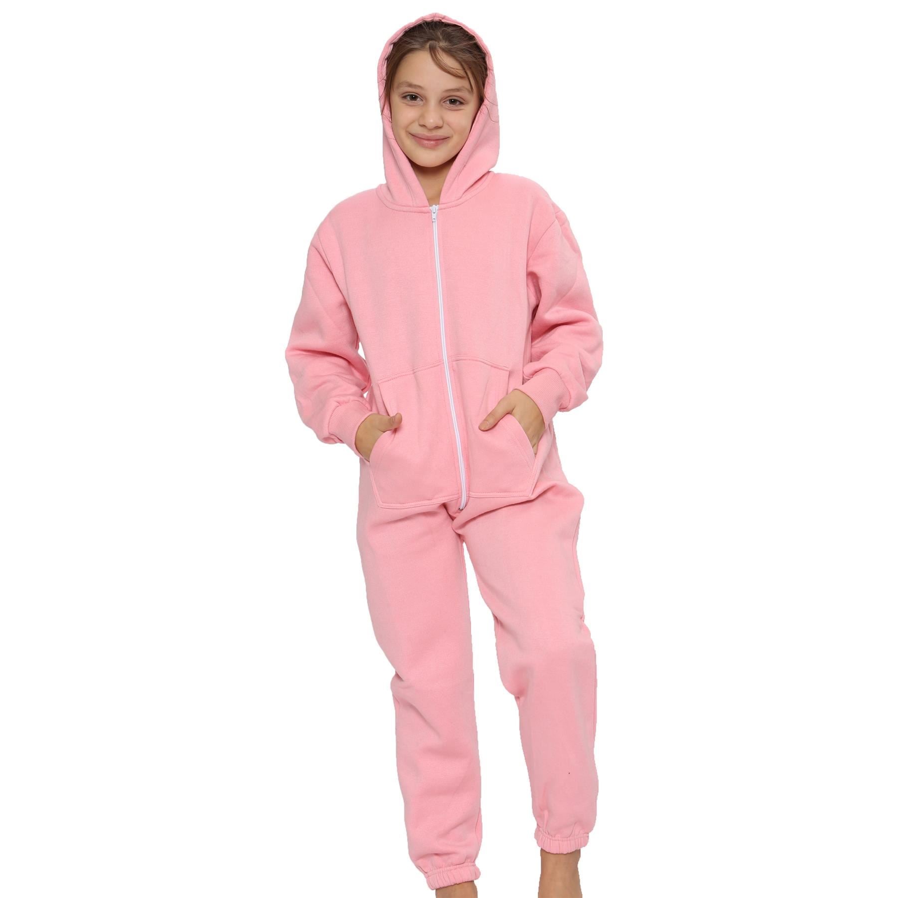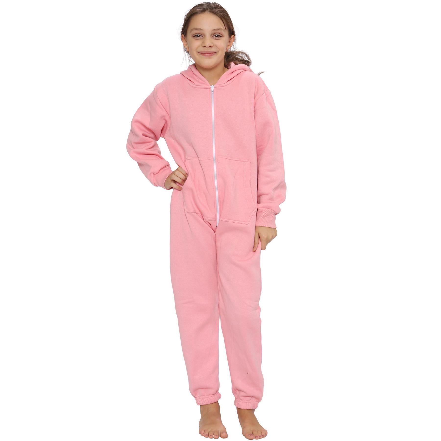 Kids Boys Girls Unisex Onesie Super Soft Fleece Hooded Zip Up Jumpsuit Loungewear Costume