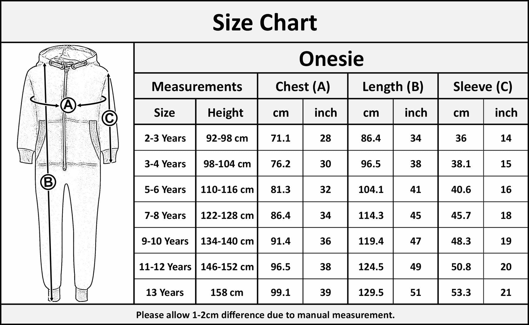 all our onesies for kids with hood are available in a selection of sizes from 2-3 years, 3-4 years, 4-5 years, 5-6 years, 6-7 years, 7-8 years, 8-9 years, 9-10 years, 10-11 years, 11-12 years and 13-14 years. The long zip makes it so easy to put on and take off. -