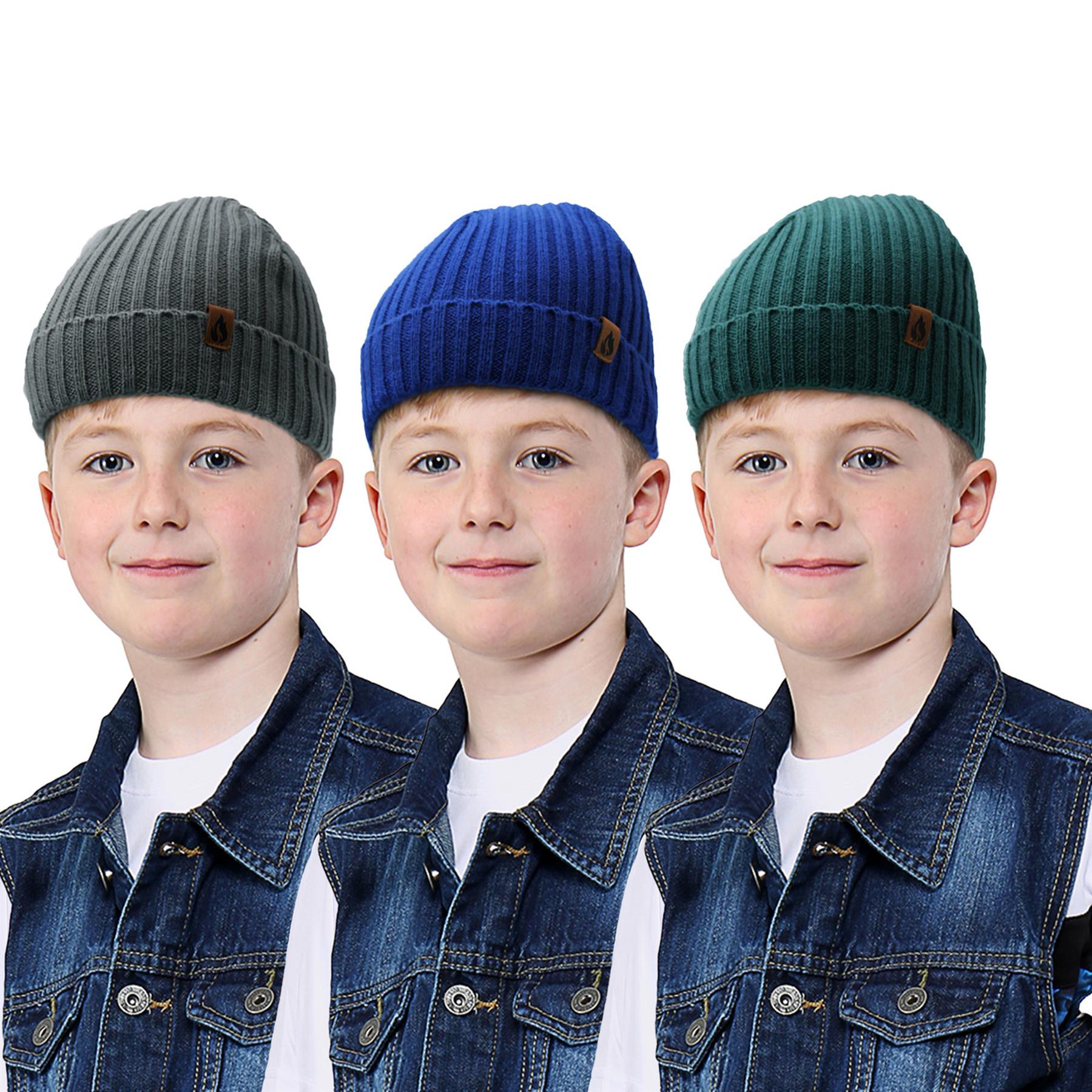 Kids Boys Hat 3 Pack Ribbed Winter Warm Cosy Fashionable Indoor Outdoor Hats