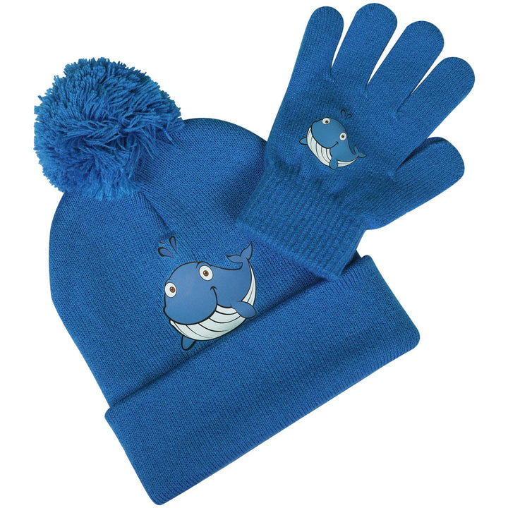 Kids Boys Hat Knitted Bobble Pom Pom Royal Hats Gloves Set Winter Warm Glove Set