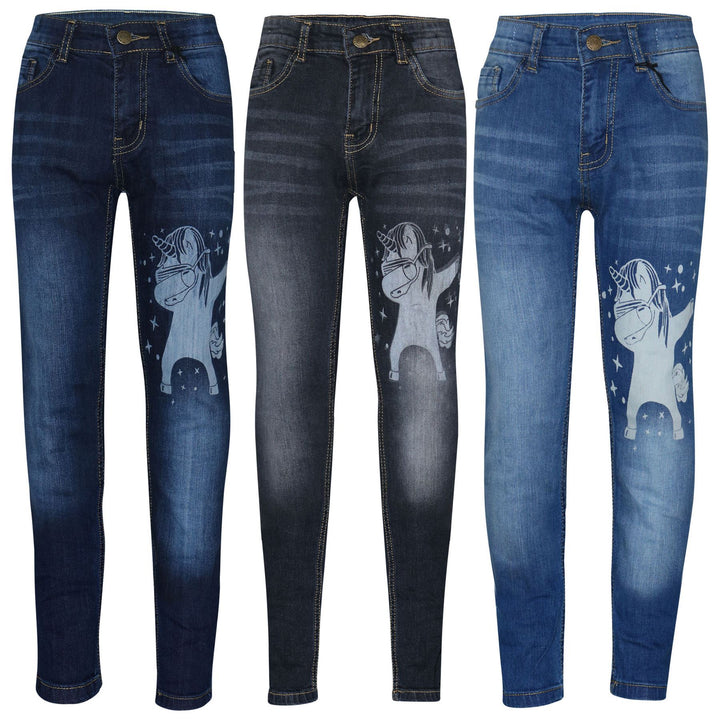 Kids Boys Jeans Designer Unicorn Dab Denim Stretchy Pants Fit Trousers 5-14 Yr