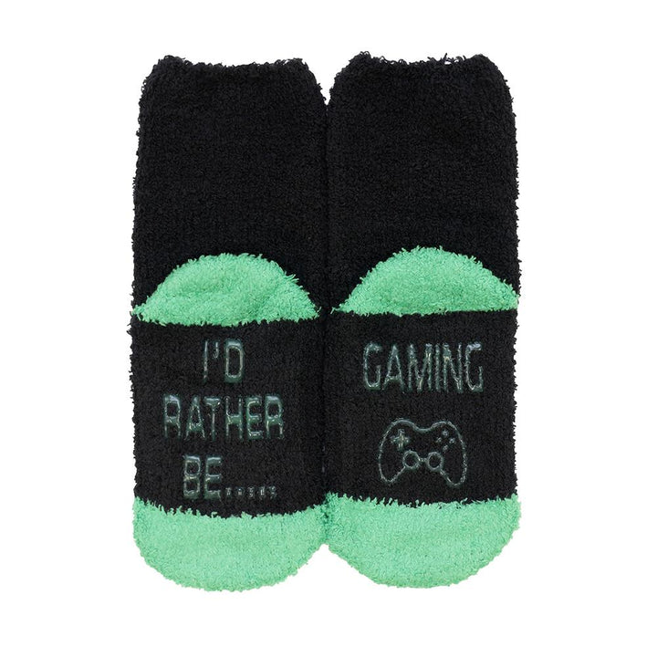 Our Boys Slogan Novelty Cosy Socks are more than just warm—they are a fun expression of personality. Available in three charming colour combinations, half-slogan print on one foot and the complementary half on the other, creating a unique and playful look. Choose from slogans like "I'D RATHER BE GAMING," "IF YOU CAN READ THIS, BRING SNACKS," or "IF YOU CAN READ THIS, THE MATCH IS ON." Elevate your child's sock game with these stylish statements! -