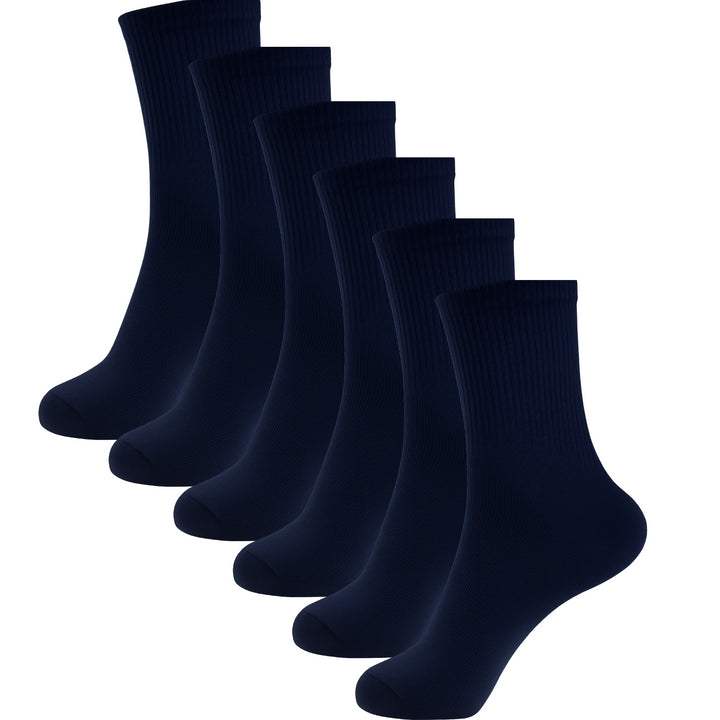 Our Boys Sports Socks come in a convenient Pack Of 3 and 6, ensuring that your child always has a fresh pair ready for the game. Crafted with precision, these Crew Athletic Socks are designed to withstand the rigors of sports and play. The superior quality guarantees that they would not wear out quickly, even during the most intense activities. -