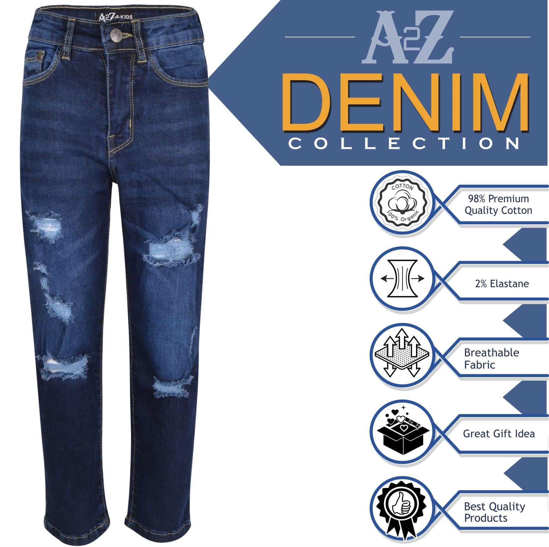 Kids Boys Relaxed Straight Fit Boot Cut Ripped Jeans for Teens Cotton Jeans 5-13