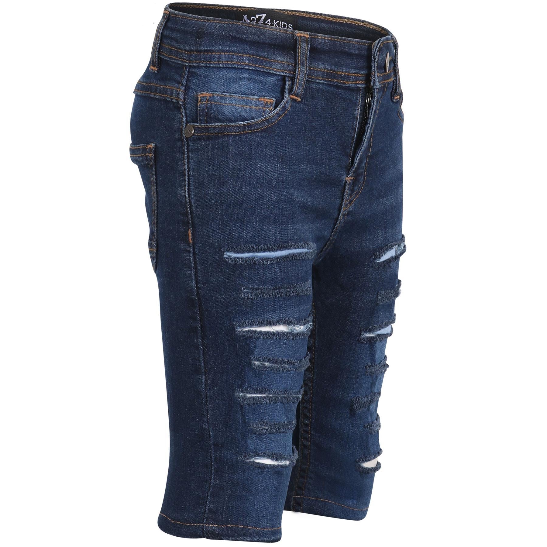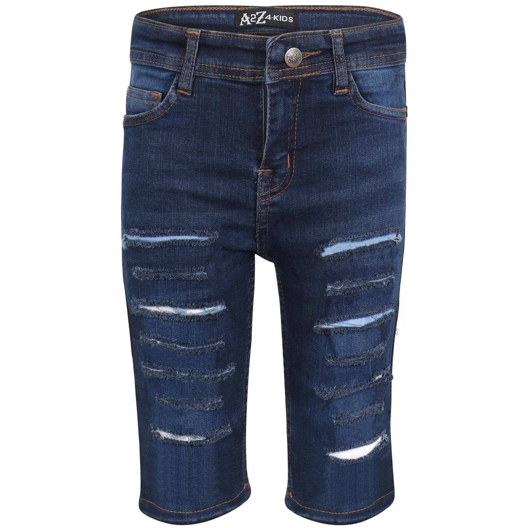 Kids Boys Ripped Denim Shorts Dark Blue Comfort Stretch Skinny Pants Trousers
