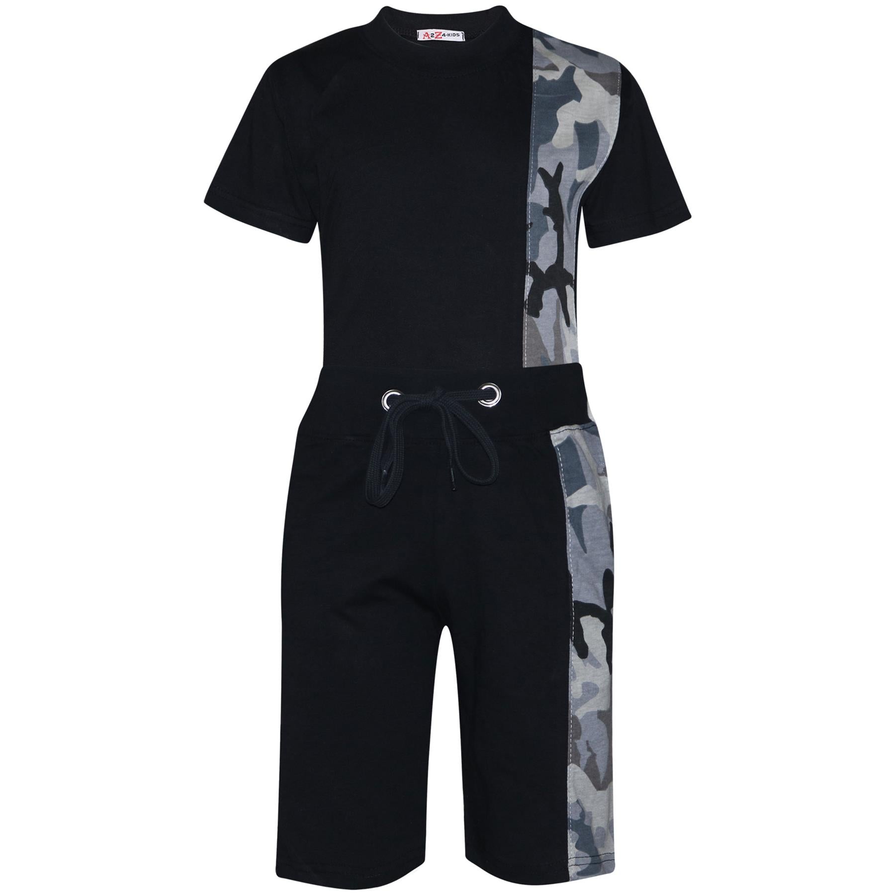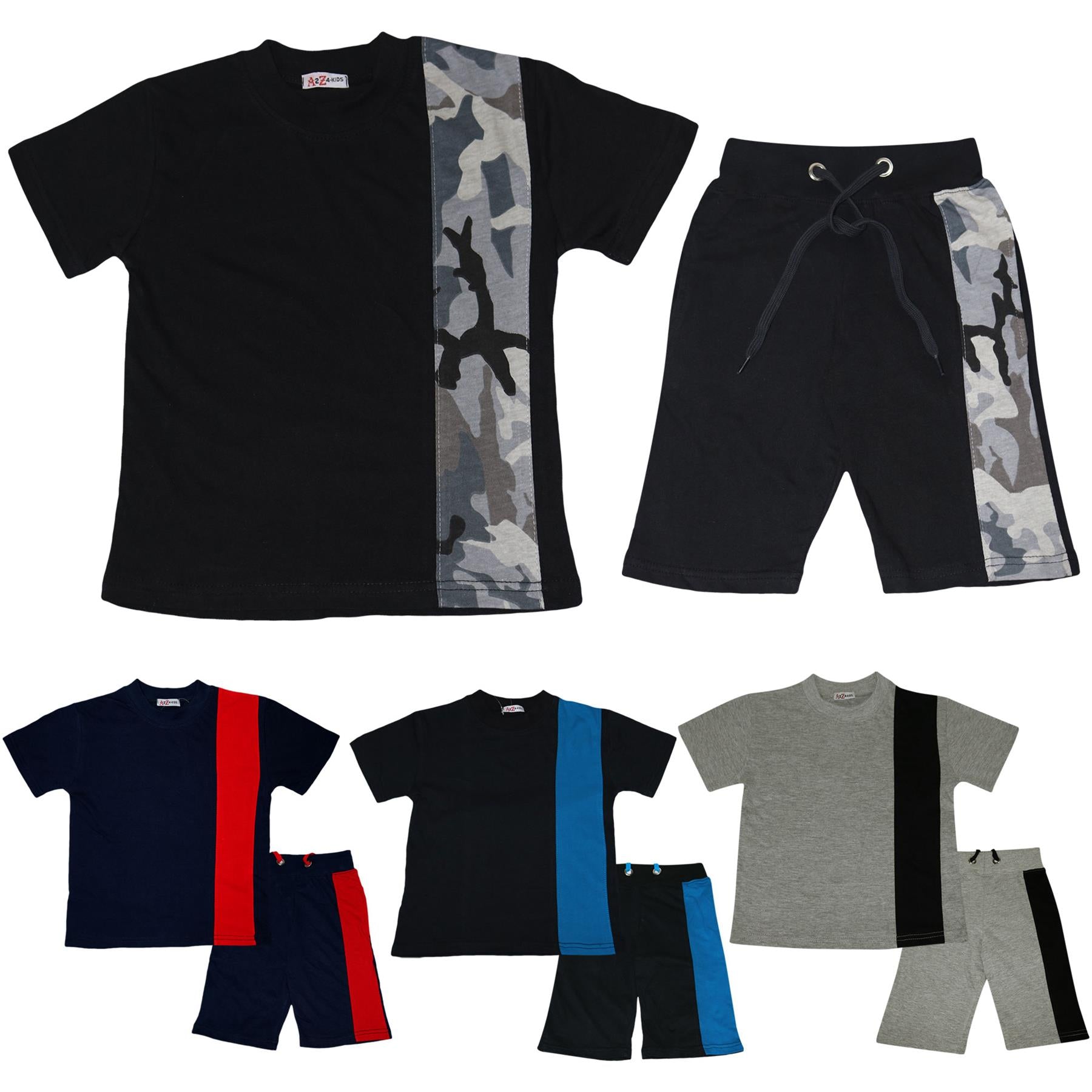 Kids Boys T Shirt Shorts 100% Cotton Contrast Panel Top Summer Short Set 5-13 Yr