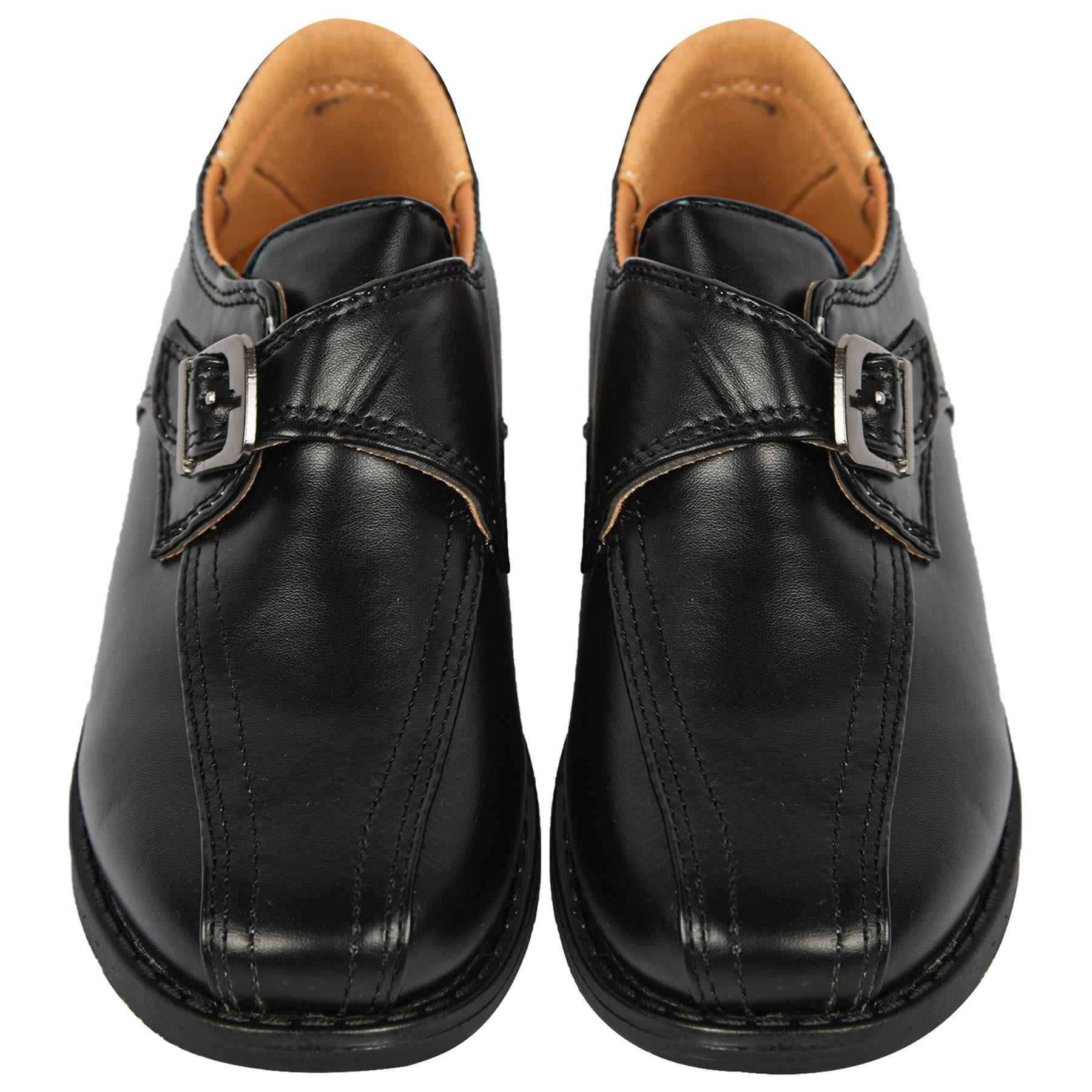 Kids Boys Teens Black School Shoes PU Leather Touch Fasten Strap Size 10 to 5