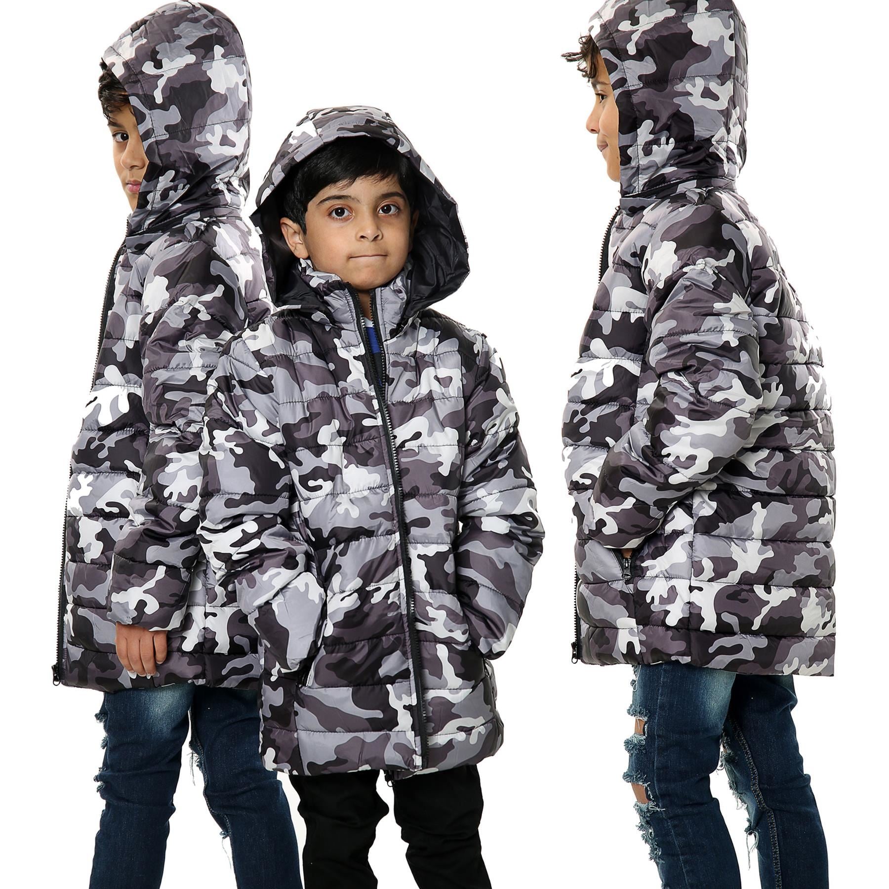 Kids Camo Puffer Coat Hooded Jacket New Detachable Hood Boys Age 3-13 yrs
