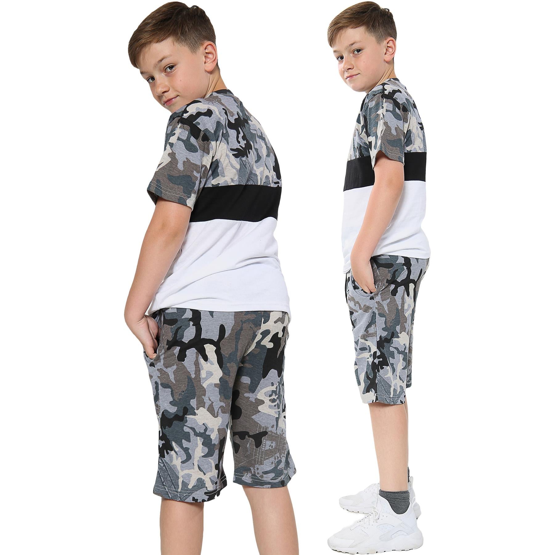 Kids Colour Contrast Panel Top & Shorts Set Summer Wear Girls Boys Age 5-13 yrs