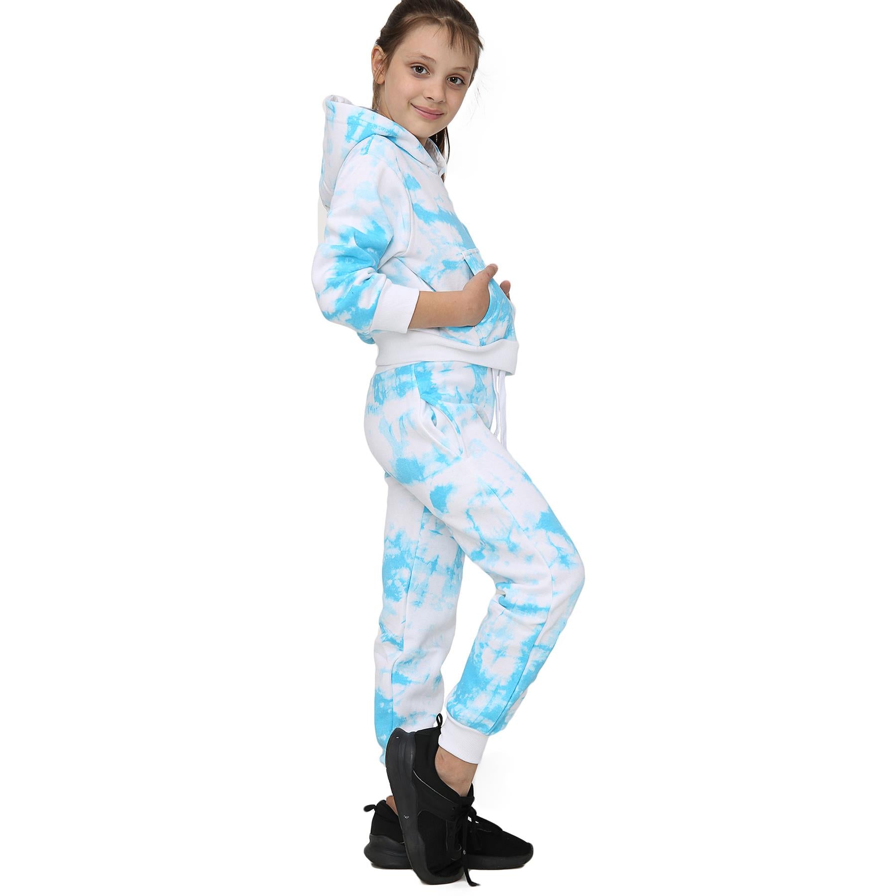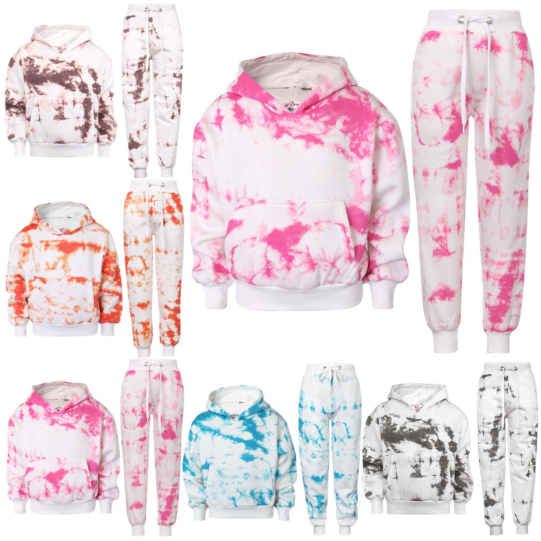 Kids Cropped Tie Dye Tracksuit Hoodie Jogging Sweatpants Girls Age 5-13 Years