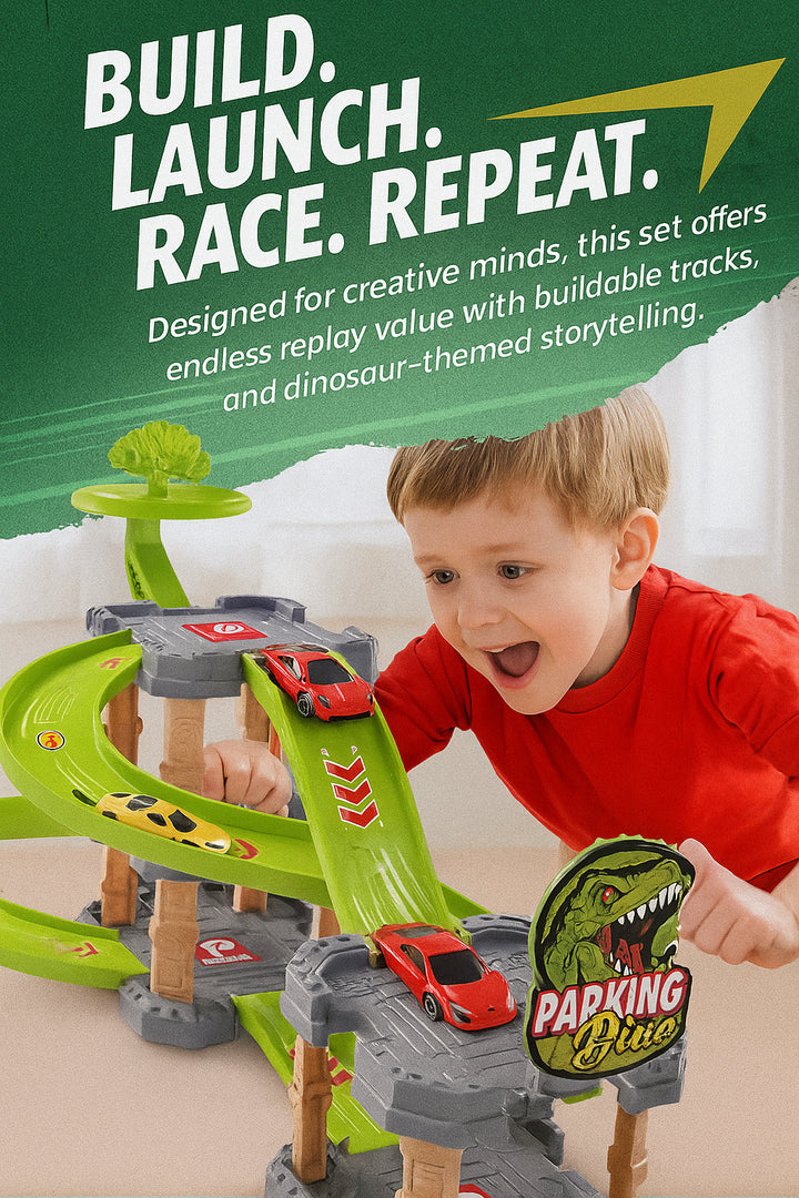 Includes a 3-tier car park design with thrilling tracks curves and a built-in dinosaur mouth launcher for high-speed action and fun racing. -