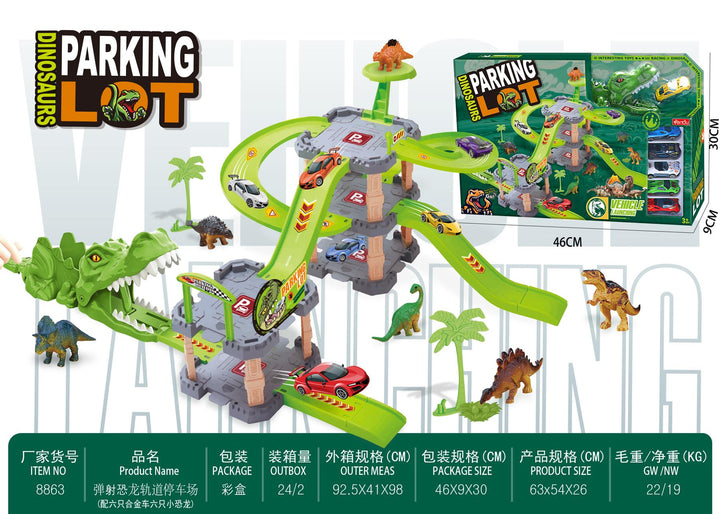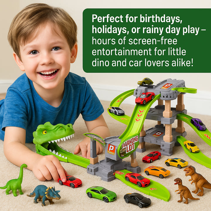 Kids Dinosaur Car Parking Lot Playset 3-Level Track Set with Toy for Boys�Girls
