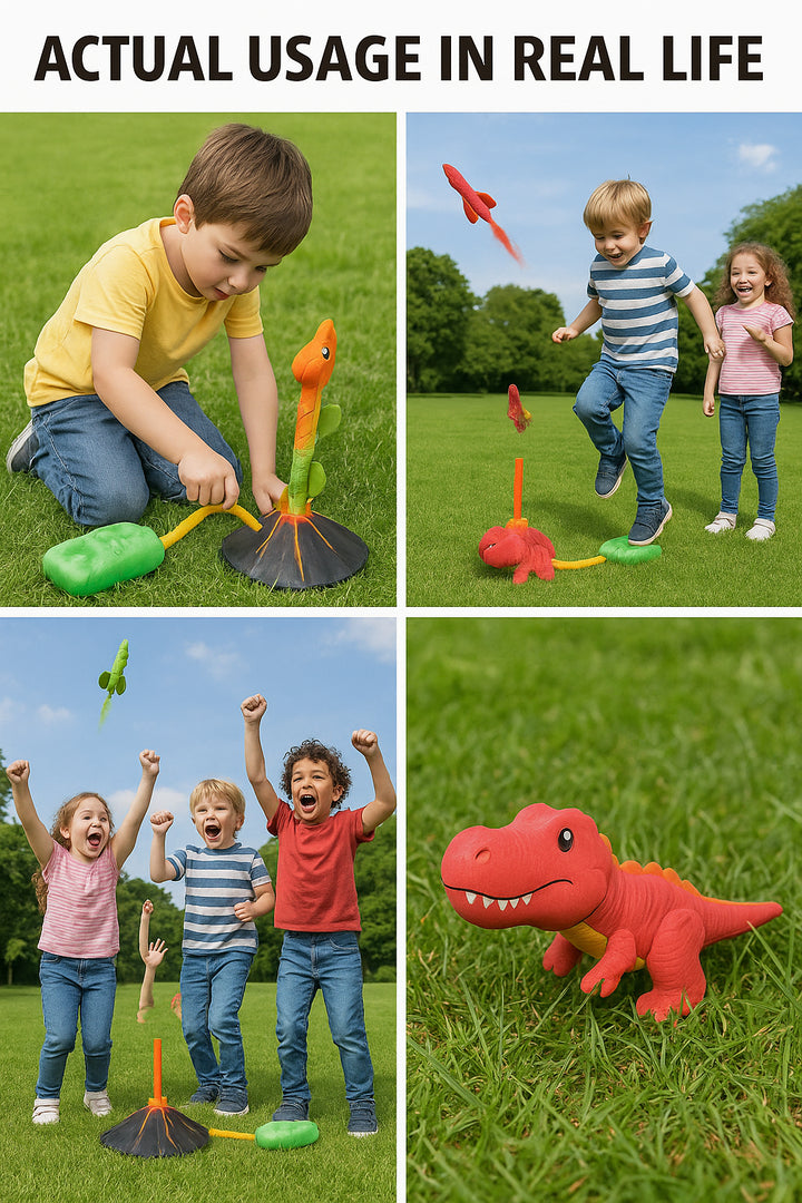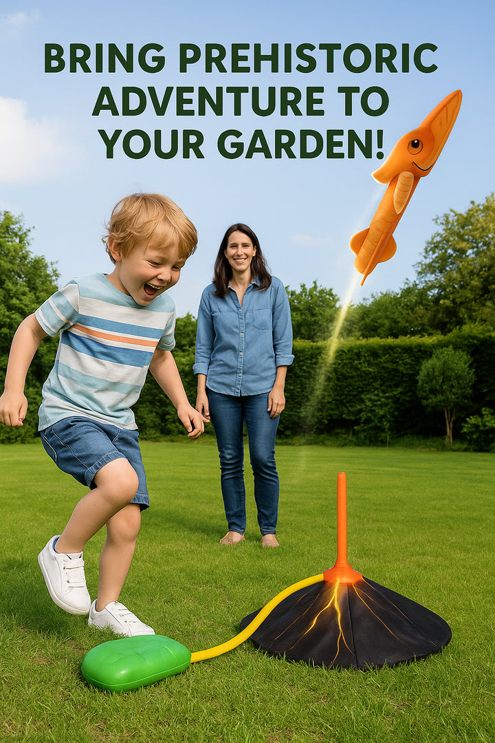 Unleash endless energy as kids jump and stomp to blast dinosaur rockets soaring up to 100 feet in the air. The easy-to-use volcano launcher and fossilised stomp pad make it simple for little feet to send T-Rex Triceratops and Pterodactyl rockets flying safely in gardens or parks.