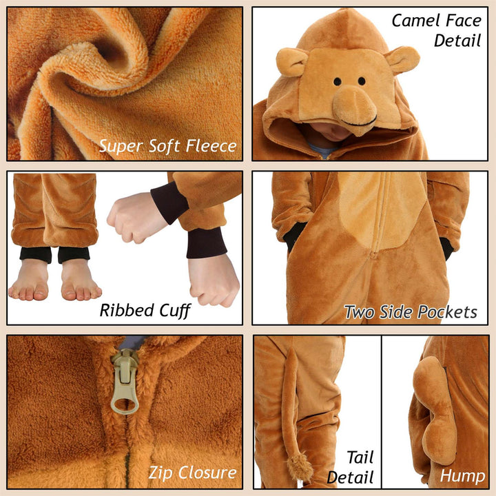 This unisex kids A2Z onesie features a soft, plush fabric that mimics the realistic texture of Camel fur, the whimsical Camel skin design on the back and the detailed hood with ears, mane add charm and authenticity. Fine workmanship and cozy plush make it an attractive and practical choice for both boys and girls. -