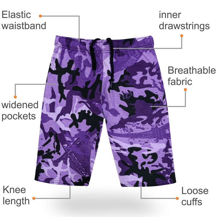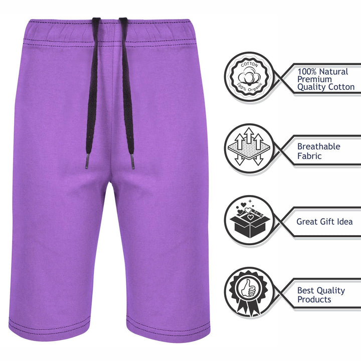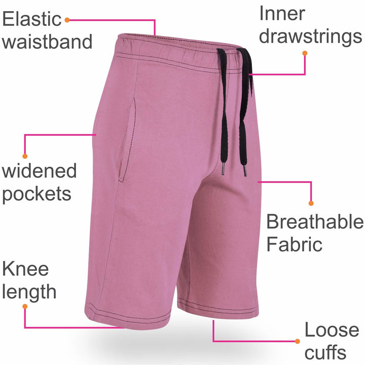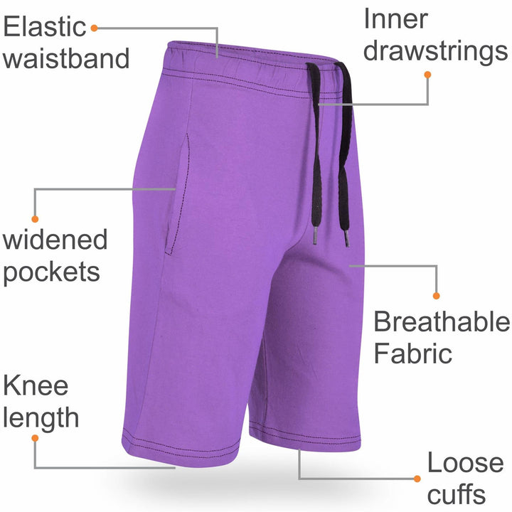 Manufactured from 100% cotton, these shorts are comfortable, breathable, and suitable for any weather. They are knee-length and feature an elastic waist with adjustable drawcords inside. -