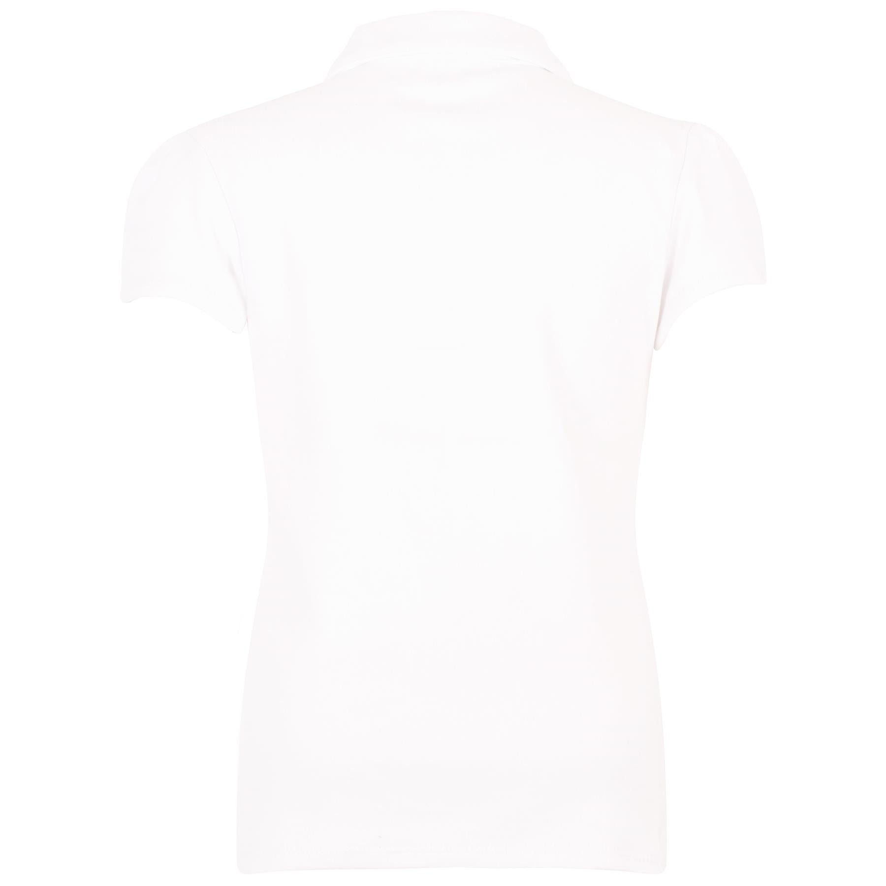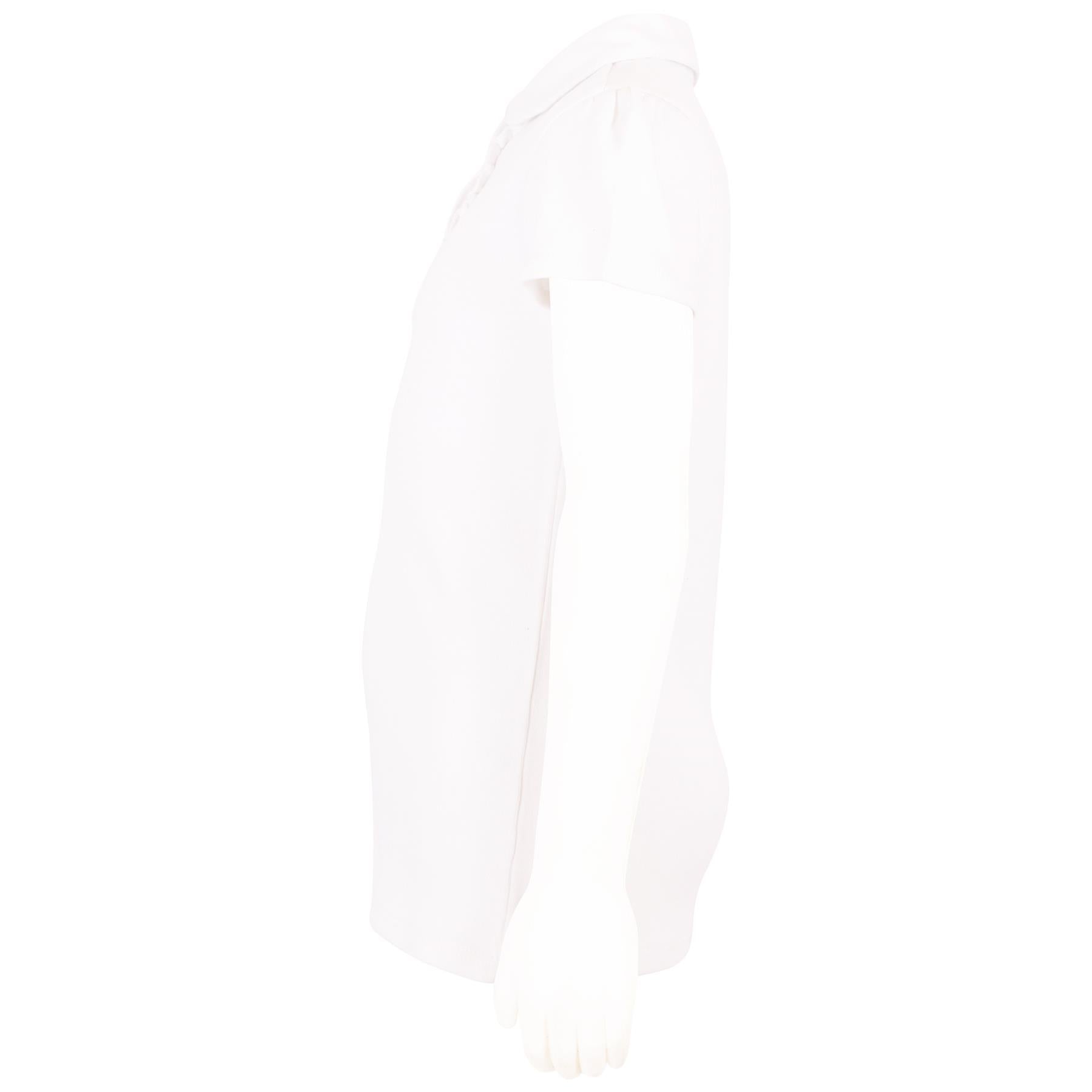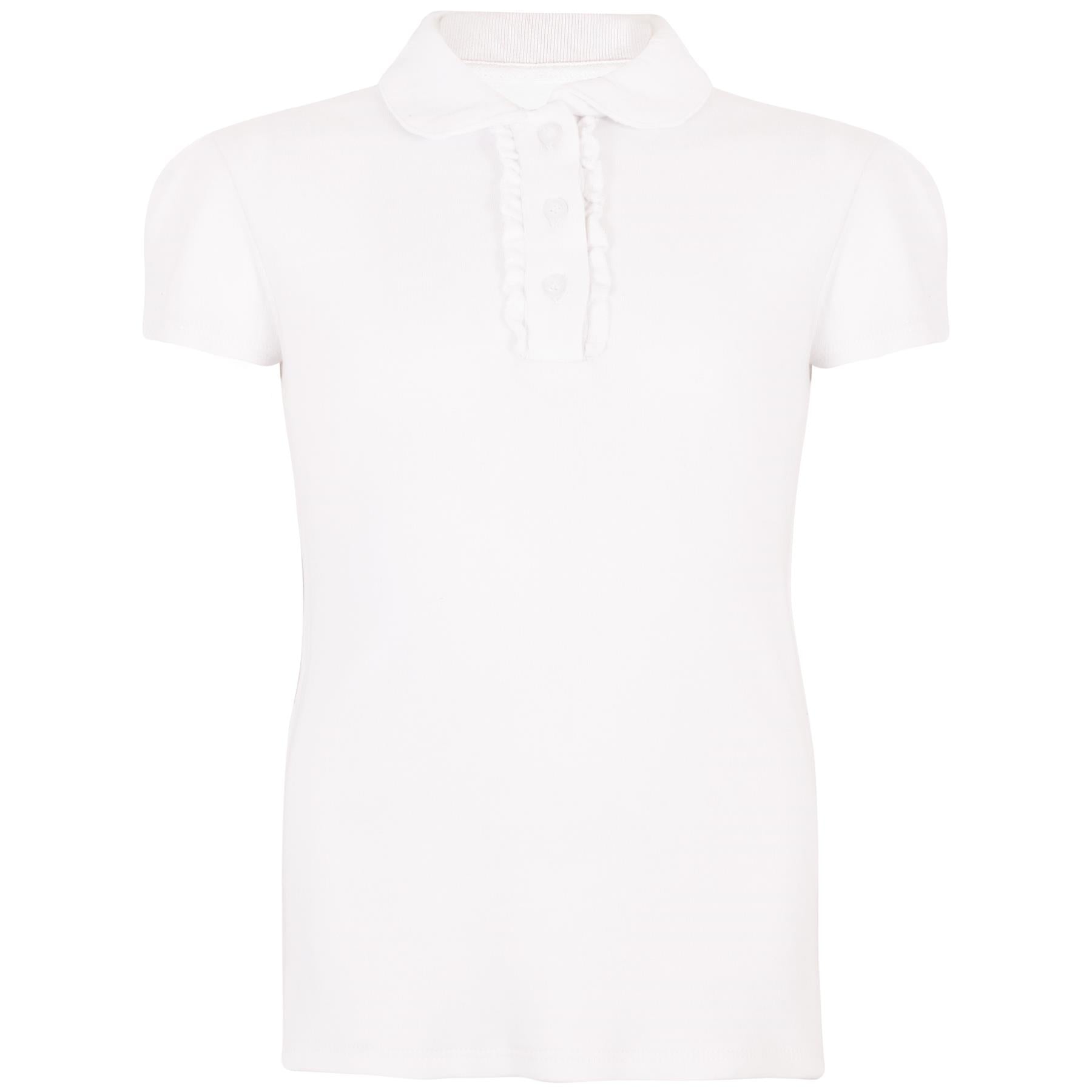The Polo T-shirt offered is designed with a Peter Pan collar, ruffle placket, three-button closure, short sleeves, and a soft, comfortable fabric, making it suitable for casual school attire. Available in sizes ranging from 5 to 14 years. Furthermore, the garment is machine washable, ensuring convenient maintenance. -