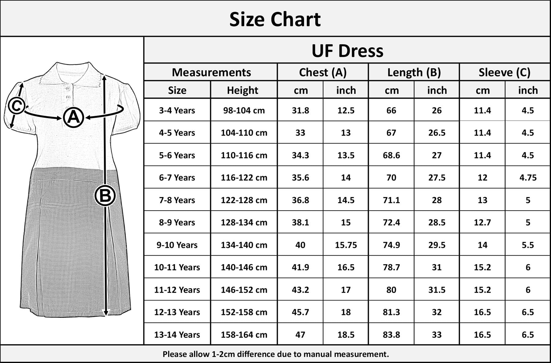 Our Uniform Gingham School Dresses are available in sizes 2-14 to ensure a perfect fit for every child. They feature Puff Short Sleeves and matching scrunchies. Each size is designed with growing children in mind, providing ample room for movement and flexibility. -