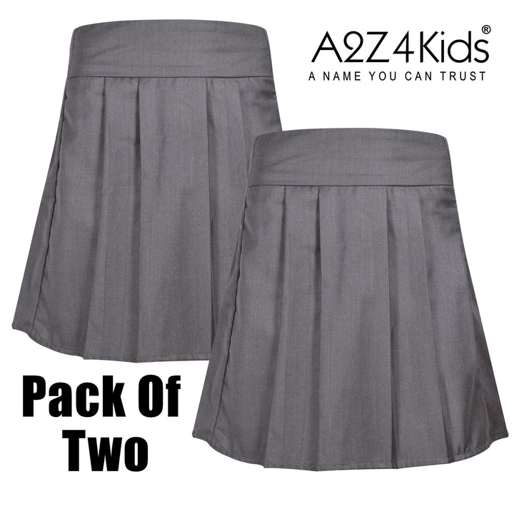 Kids Girls 2 Pack School Uniform Pleated Skirt Elasticated Summer Skater Skirts