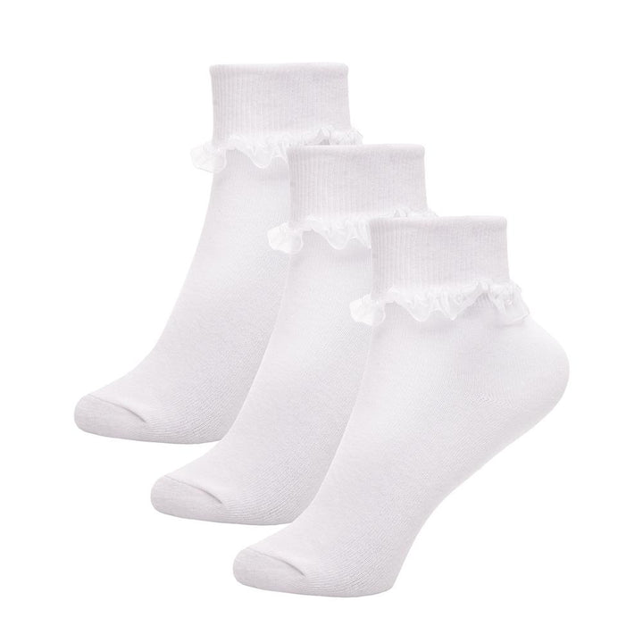 Kids Girls 3 Pack Frilly Lace Ankle Cotton Socks School Party Lace Trim Socks