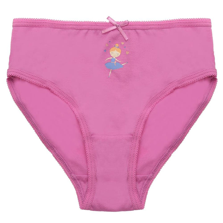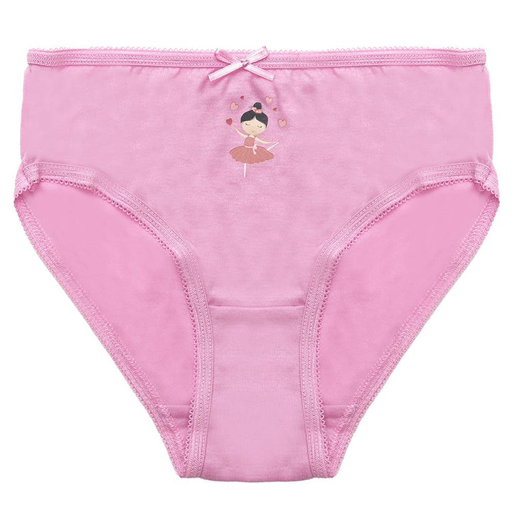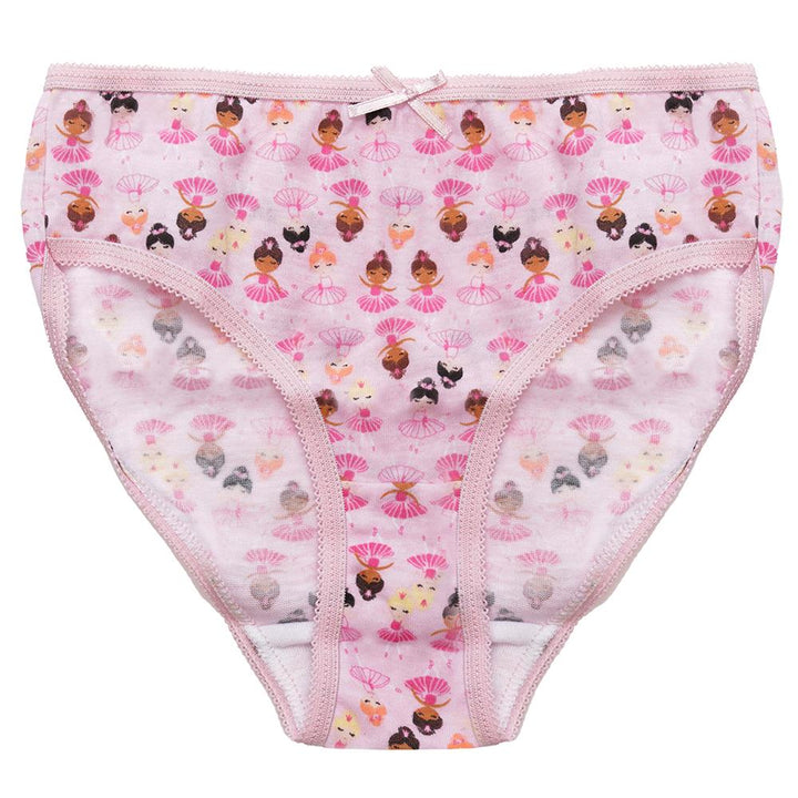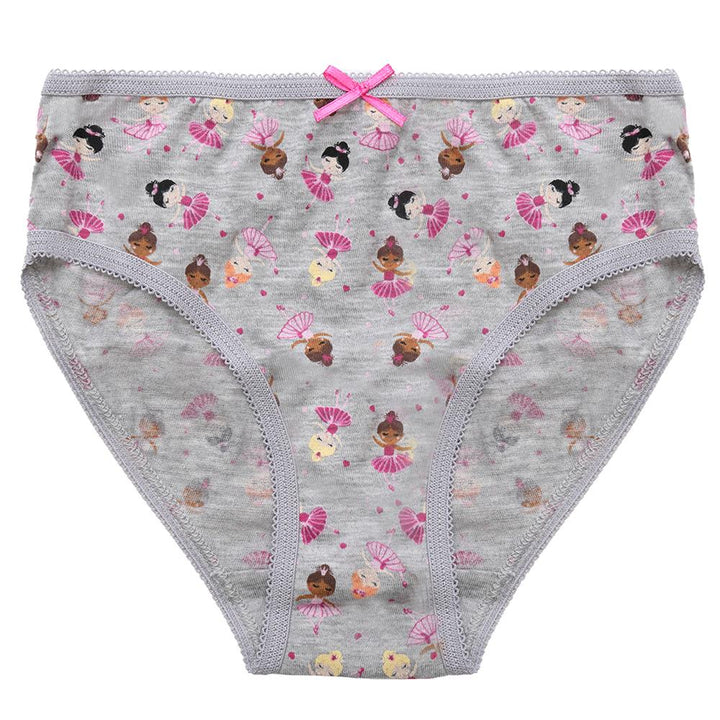 Adorable 7-pack girls briefs featuring 5 plain pastel designs and 2 ballerina all-over prints. Each pair includes a sweet ballerina motif and tiny bow detail for a charming finish. Perfect for everyday wear, giving your little one a fun and stylish look she ill love.