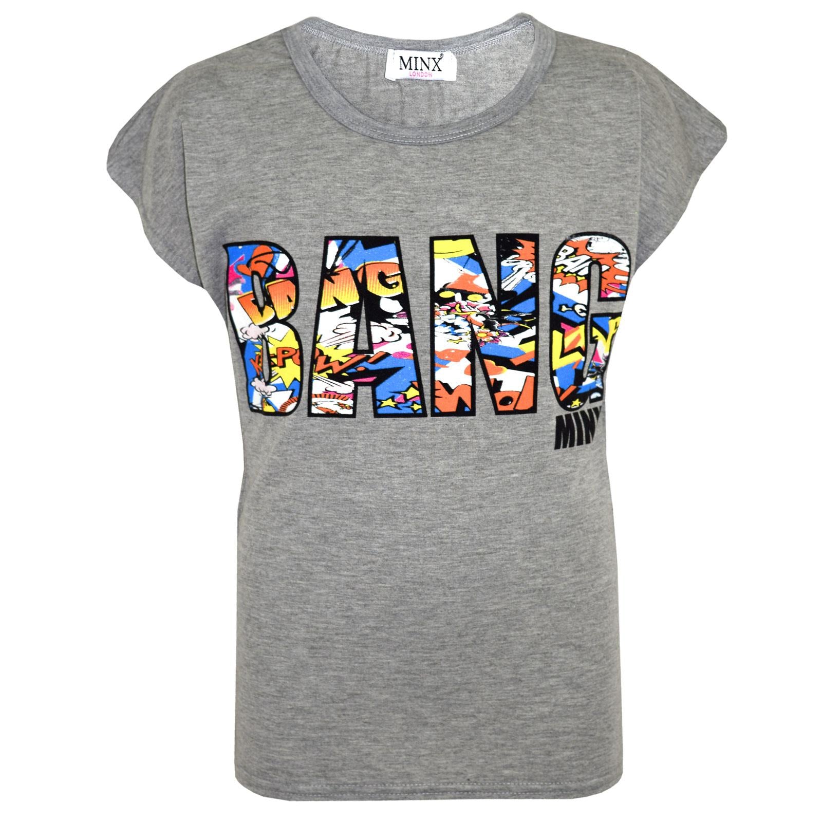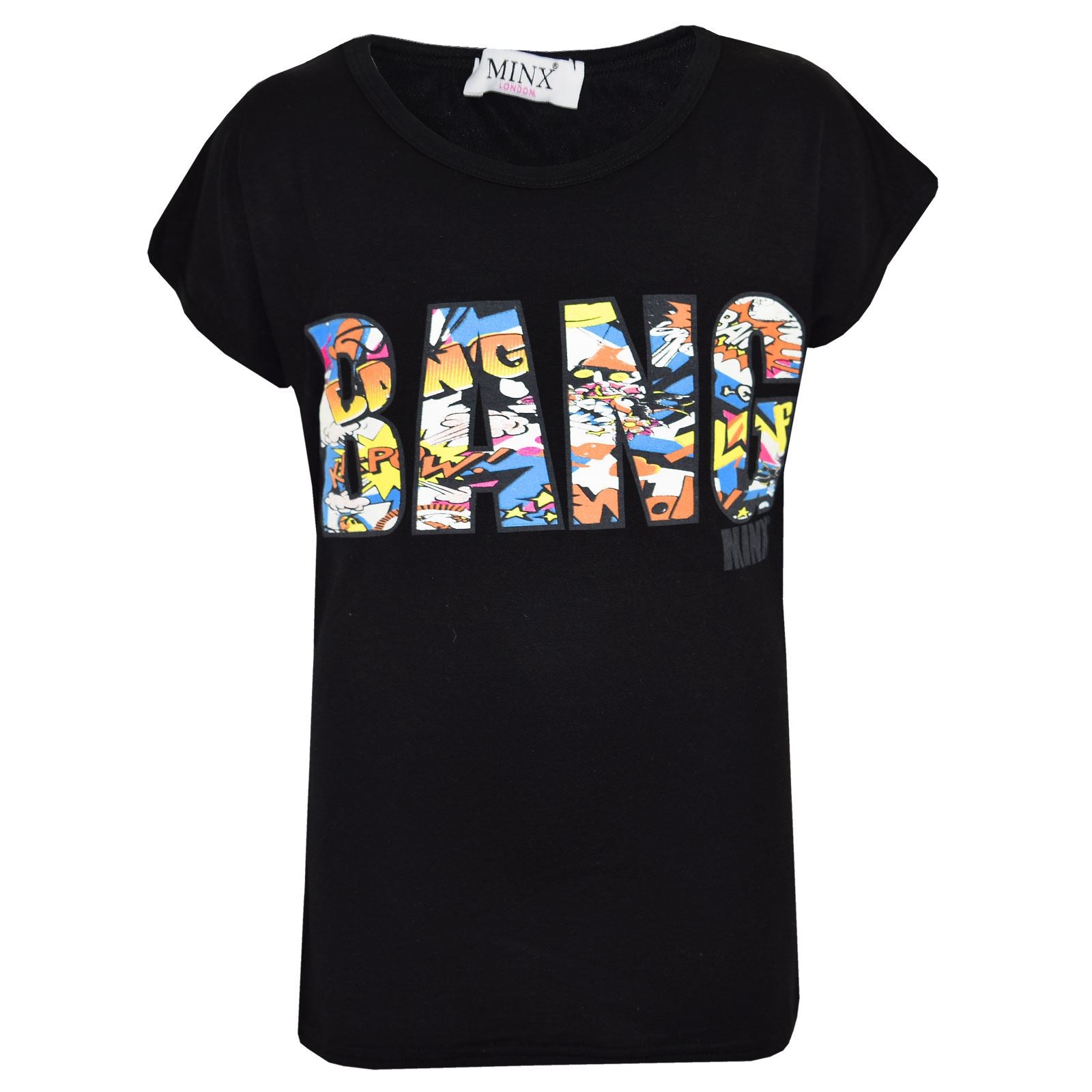 Kids Girls BANG Printed Comic Book Print Fashion Trendy Top New Age 7-13 Years