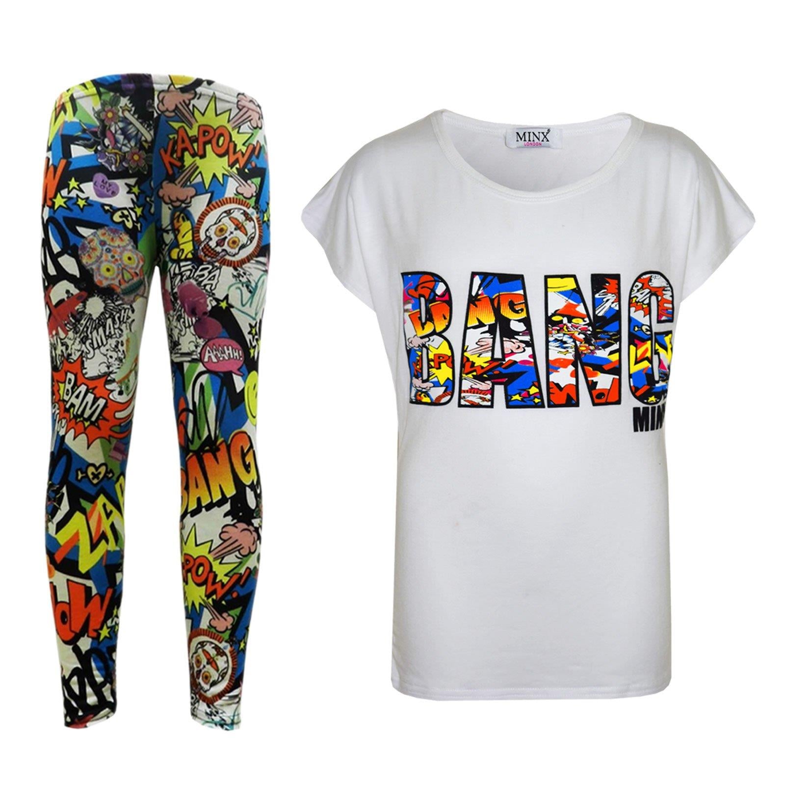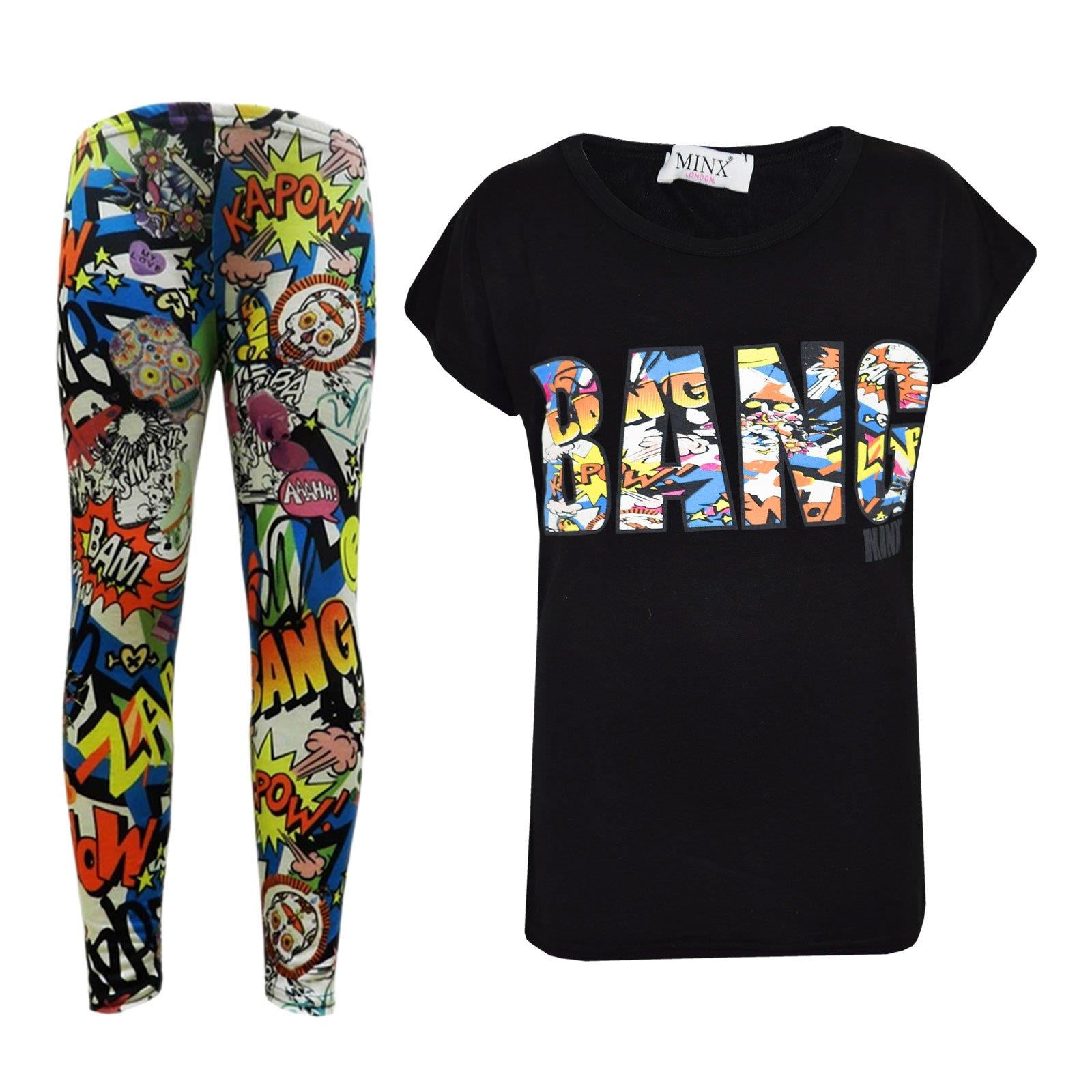 Kids Girls BANG Printed Trendy Top & Stylish Fashion Legging Set Age 7-13 Years