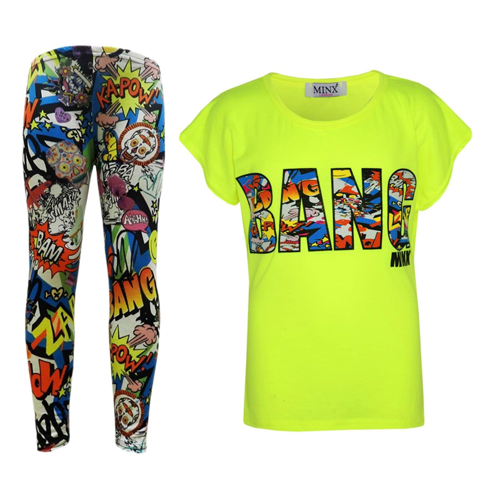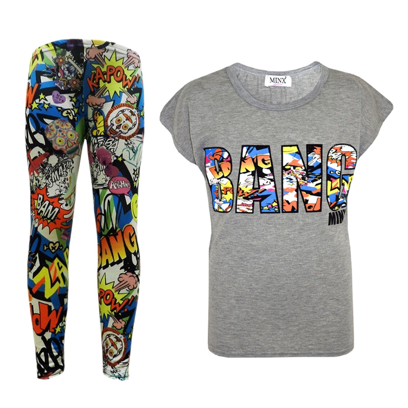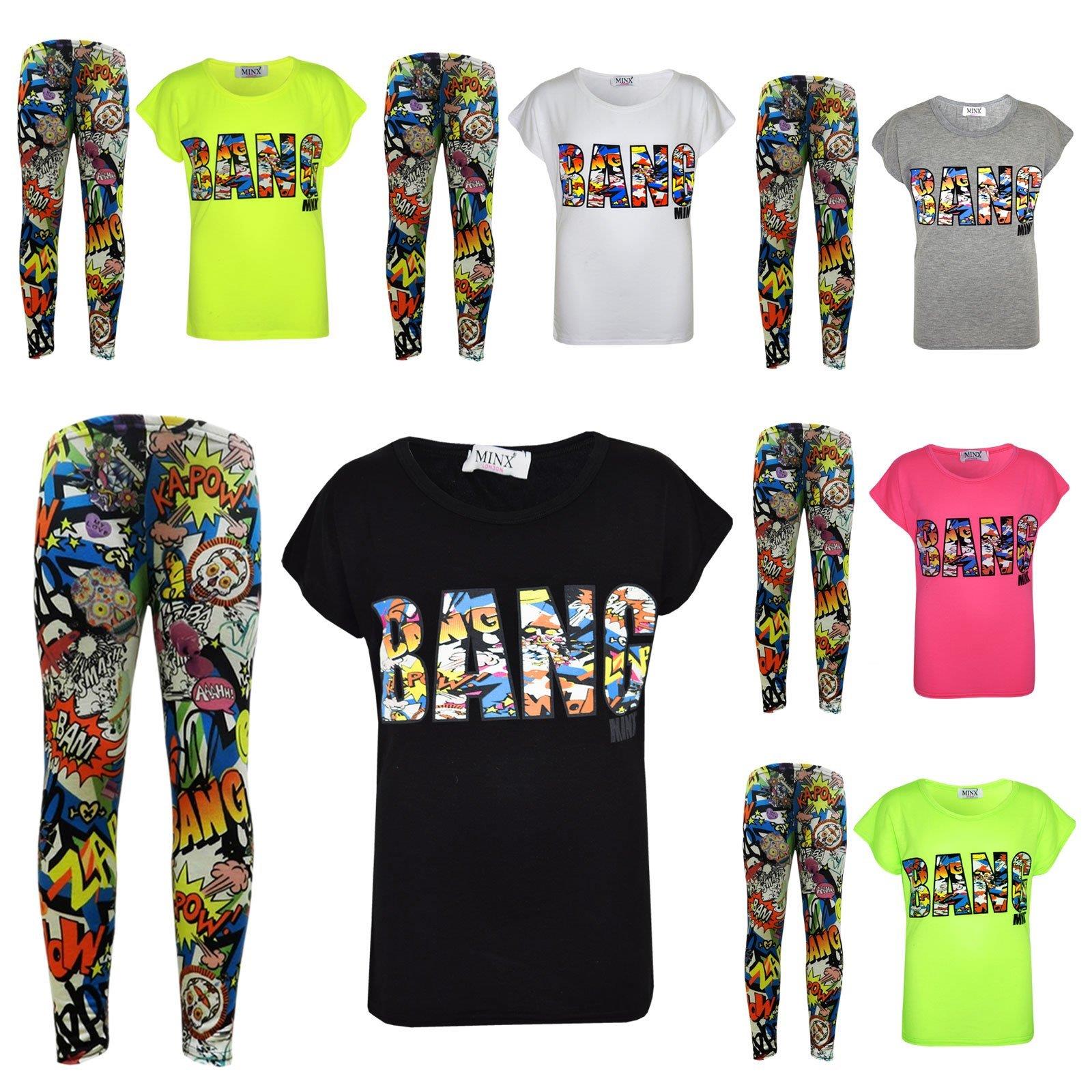 Shop With Confidence Simple Returns 30 Days Returns/Exchanges Accepted ? All Orders Dispatched Within 24 HOURS ? Here Is Girls New COMIC BANG Print Stylish Fashion Trendy Crop Top & Fashion Legging Set. Very Nice And Good Looking. 2 Piece Set. Available Size; 7-8, 9-10, 11-12, 13 Years. Available Color; Black, Grey, Neon Green, Neon Pink, Neon Yellow & White. Thanks for Looking Check Out My Other Items!