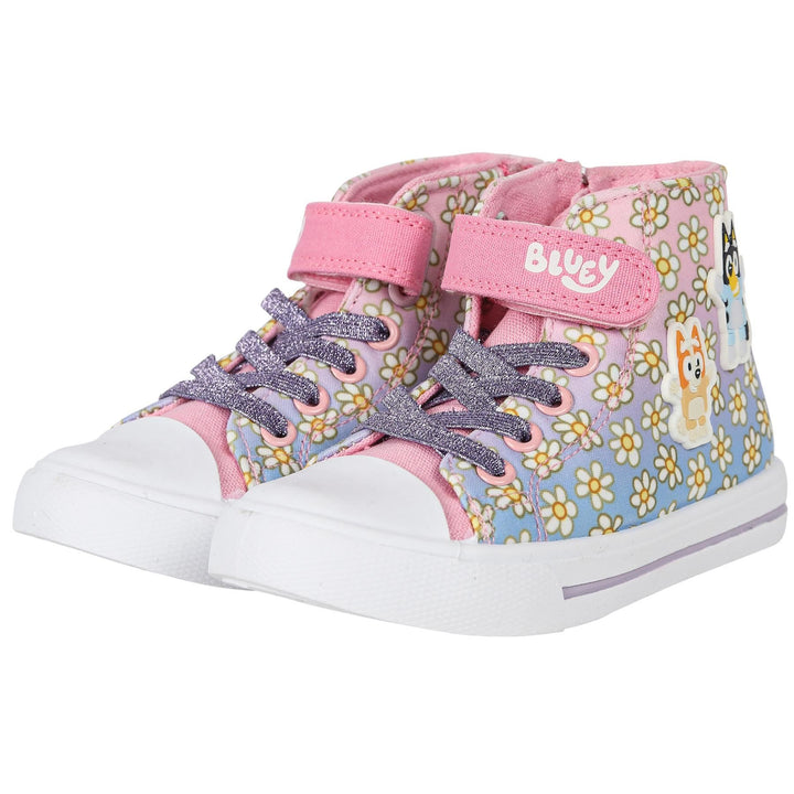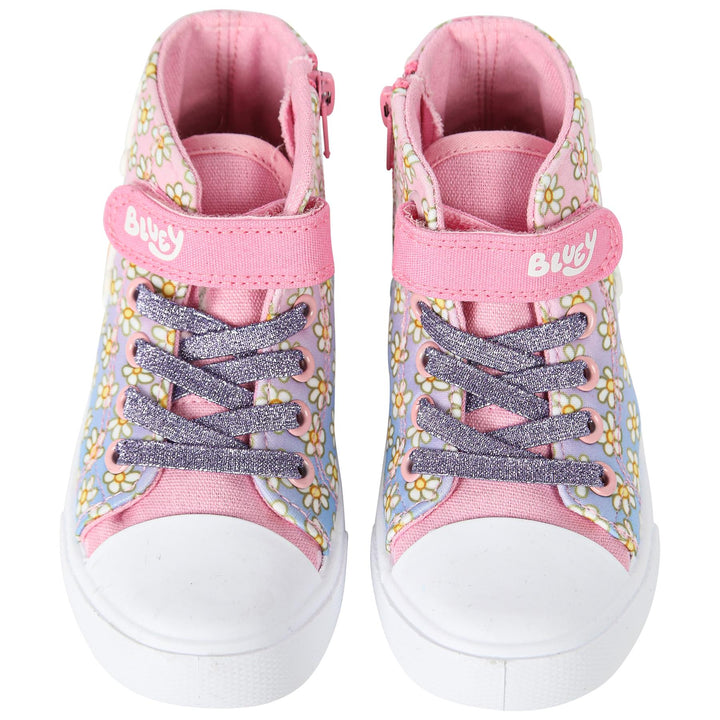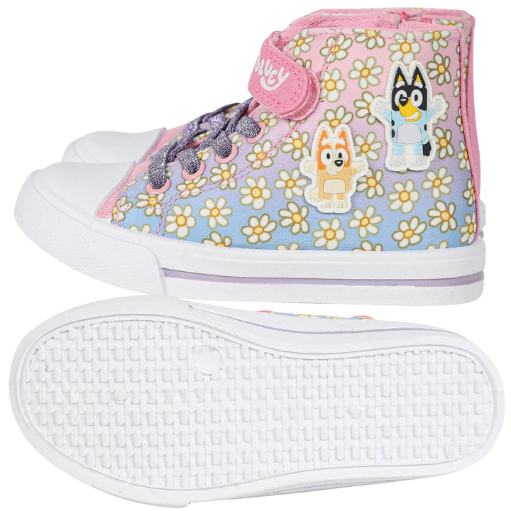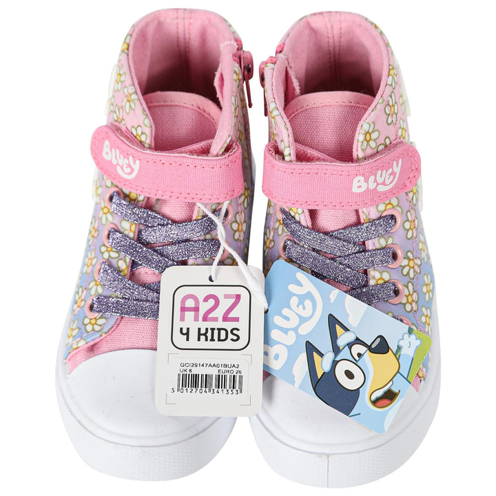 Kids Girls Bluey High Top Trainers Canvas Shoes Side Zip Officially Licensed