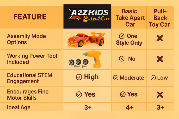 Perfect for building early engineering skills, this take-apart car toy encourages STEM education through constructive thinking, creativity, and fine motor development in children aged 3 and above. -