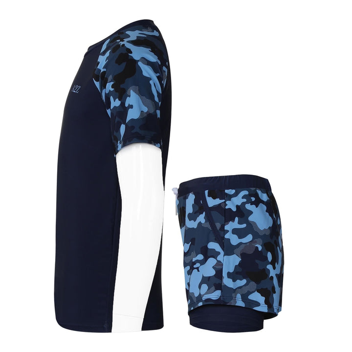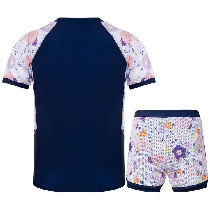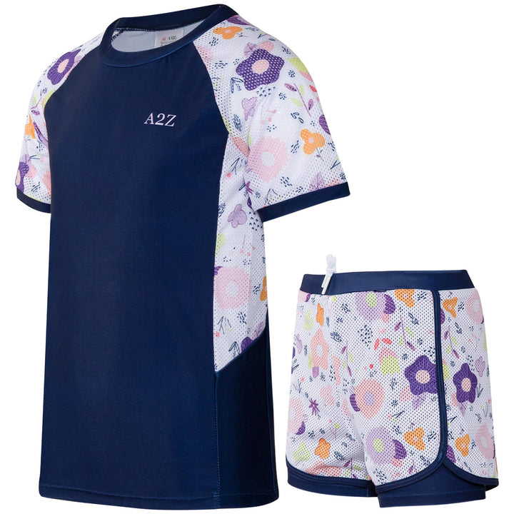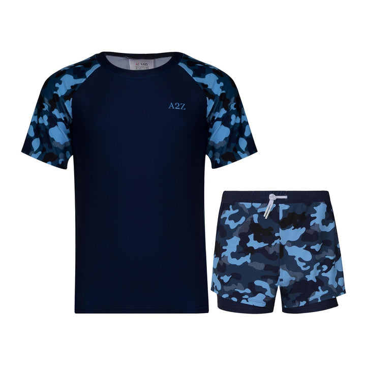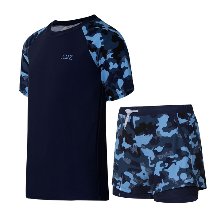 Choose from 5 playful designs: “Navy Camo Dive” and “Ocean Critters Splash” for boys, or “Floral Pink Bloom,” “Tropical Light Blue,” and “Navy Garden” for girls. Each set features matching tops and shorts to keep kids looking cool.