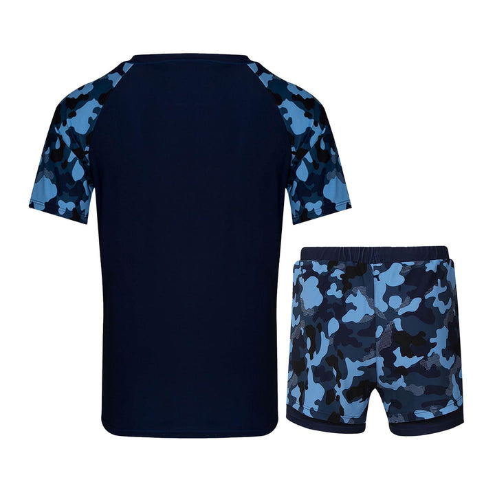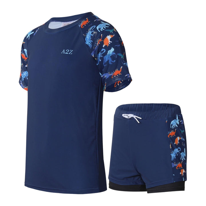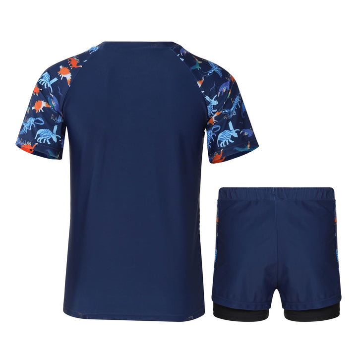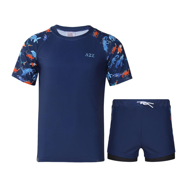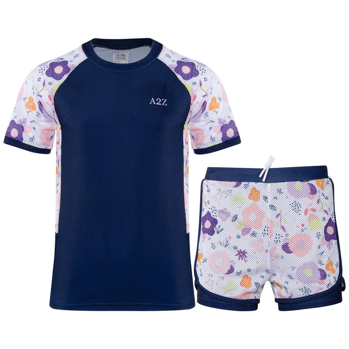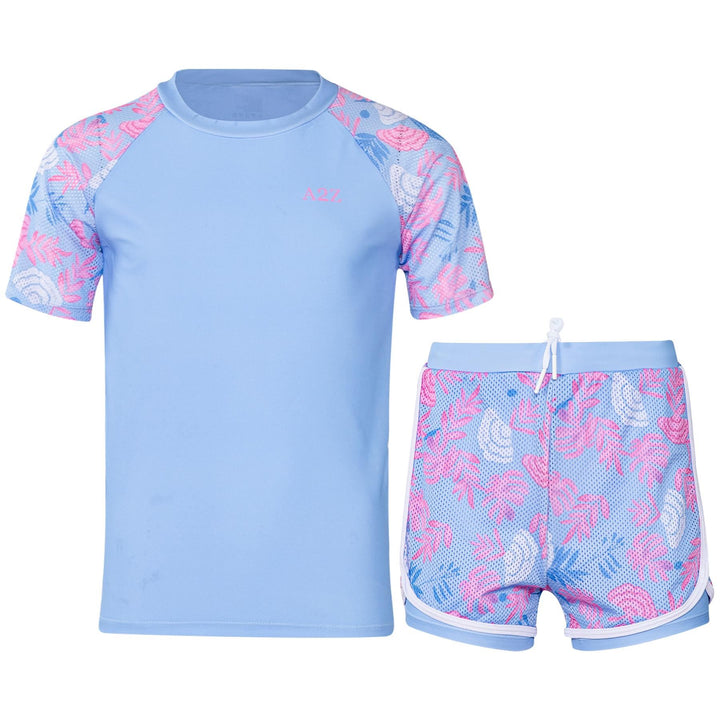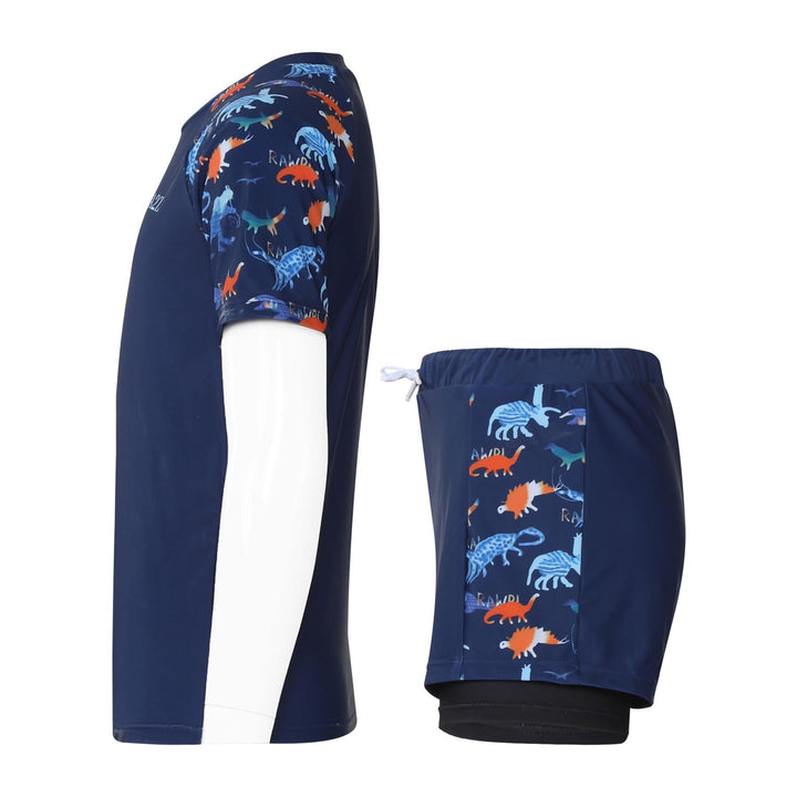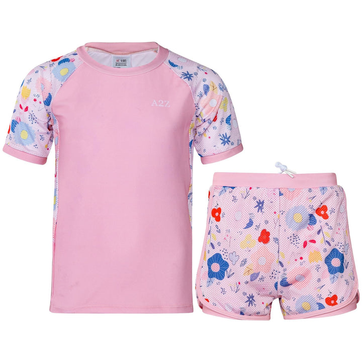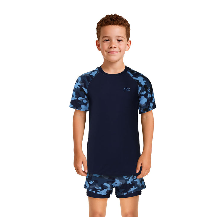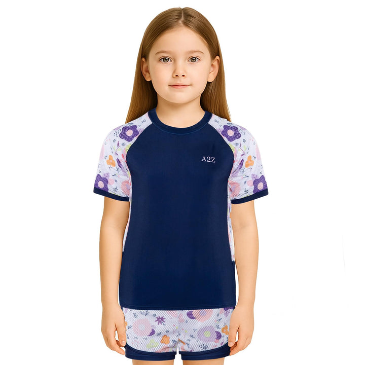 The short-sleeved rash guard top offers UV protection and a snug yet flexible fit. Paired with coordinating shorts, this stylish set shields their skin while letting them shine ideal for holidays, resorts, or splash parks.