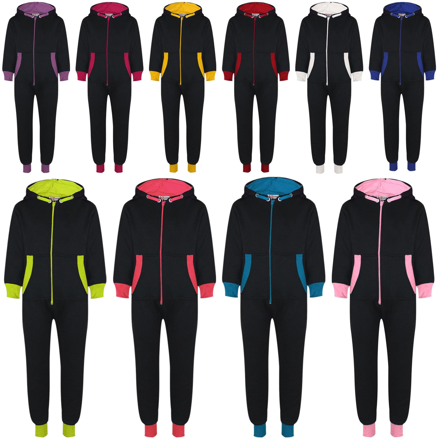 Kids Girls Boys A2Z Onesie One Piece Contrast Fleece Hoodie All In One Jumpsuit